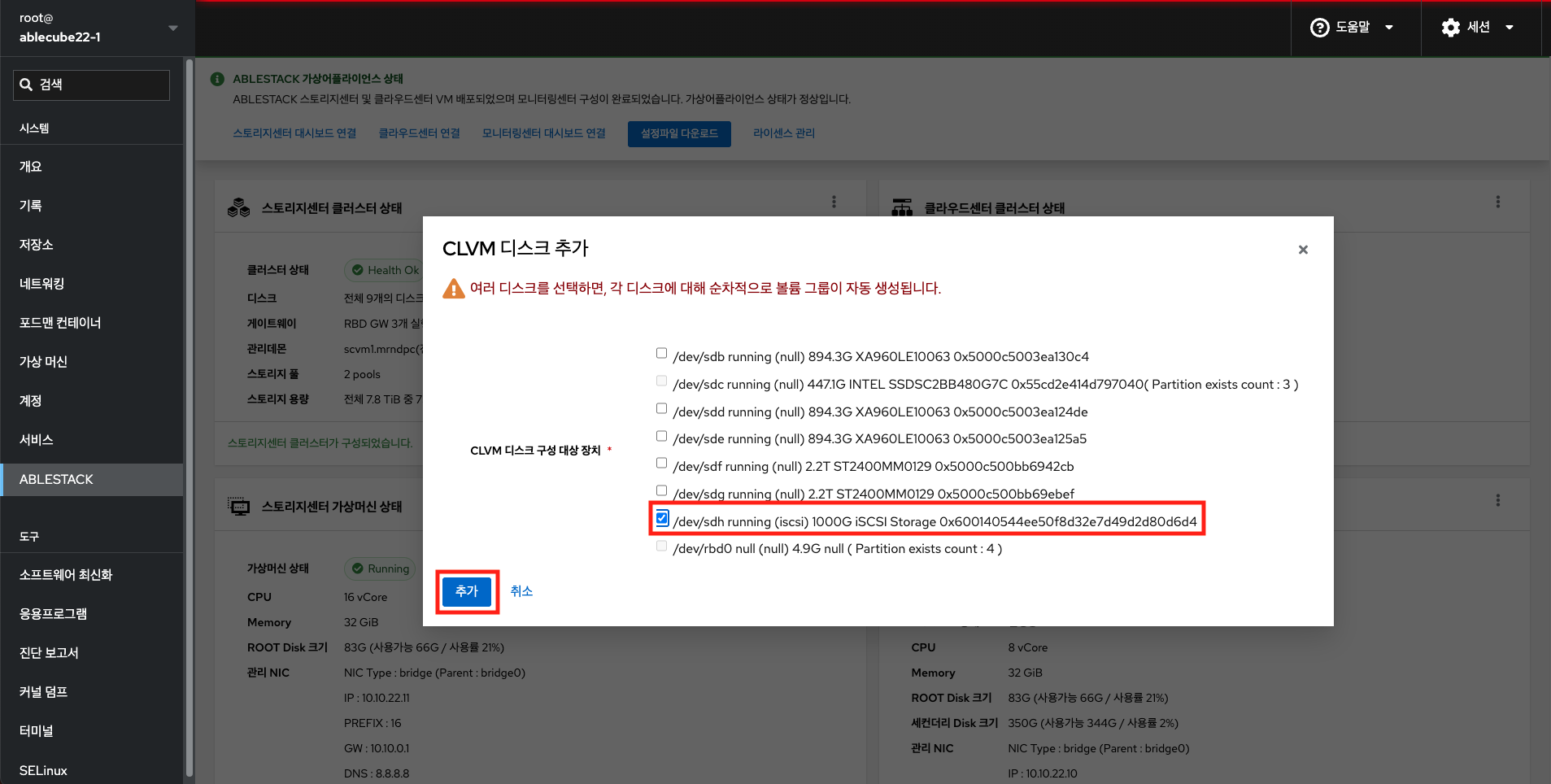 - CLVM 디스크 추가 팝업을 호출합니다.