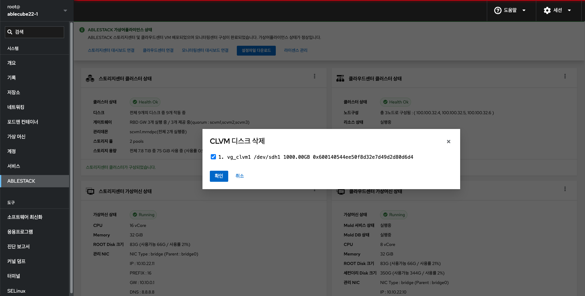 - 확인 버튼을 클릭하여 CLVM 디스크를 삭제합니다.