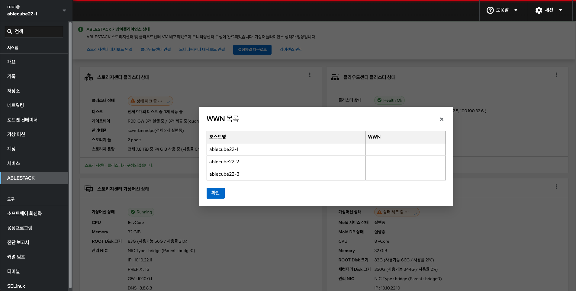 - 확인 버튼을 클릭하여 WWN 목록 팝업을 닫습니다.