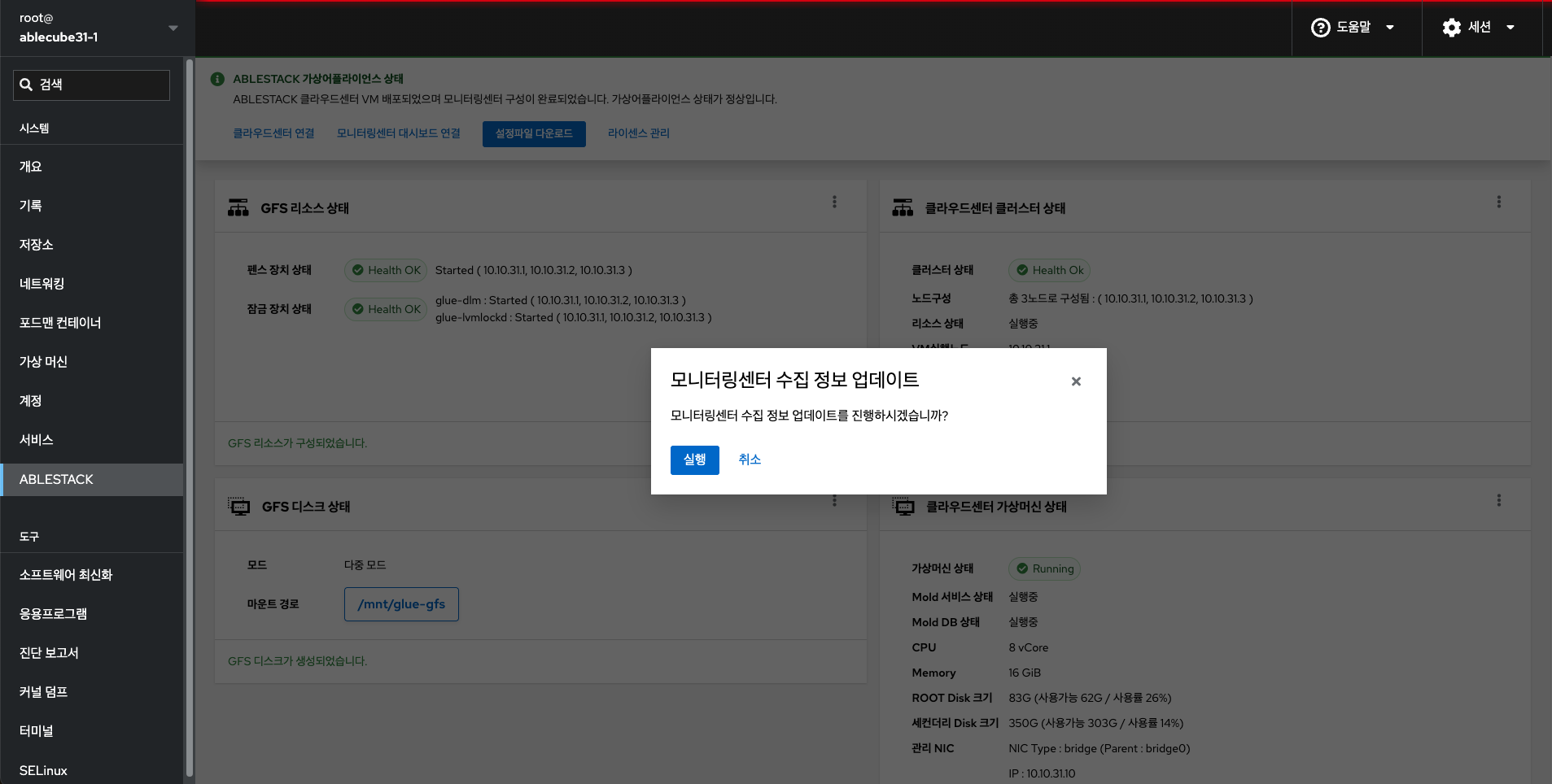 - 실행 버튼을 클릭하여 해당 모니터링센터 수집 정보 업데이트합니다.