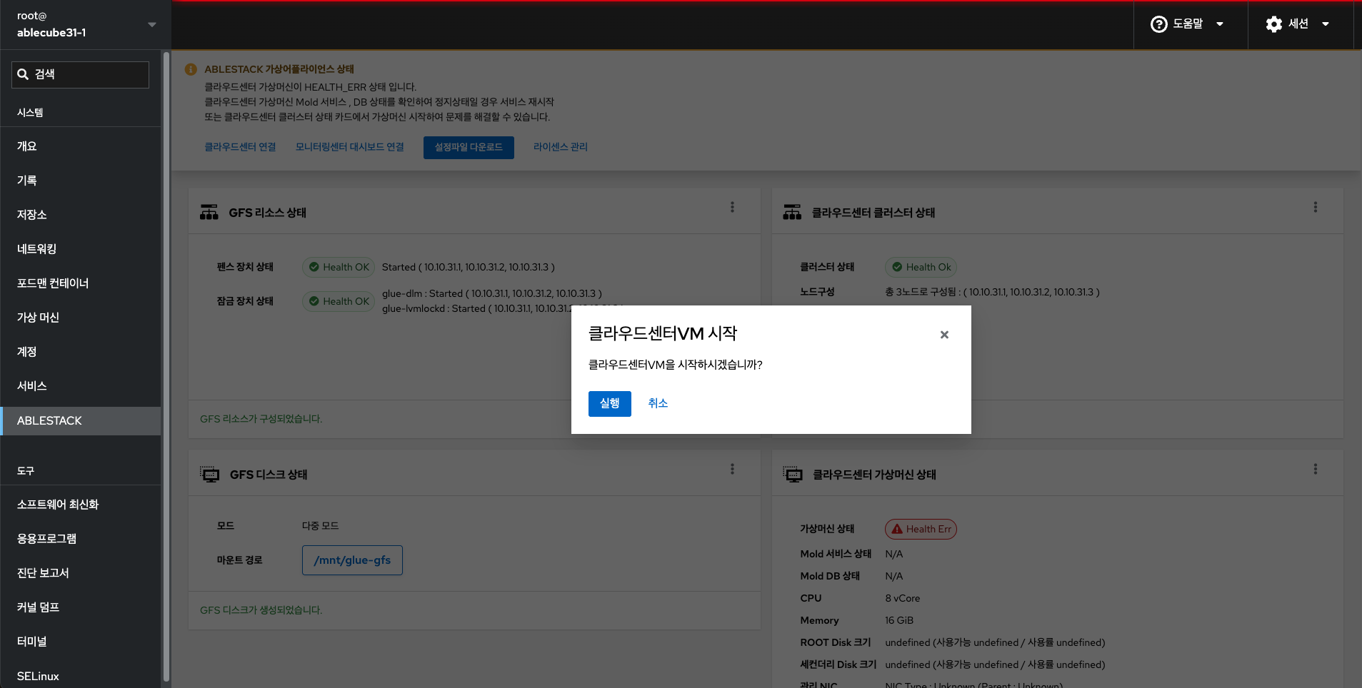 - 클라우드센터VM이 시작 중인 경우 버튼이 비활성화됩니다.