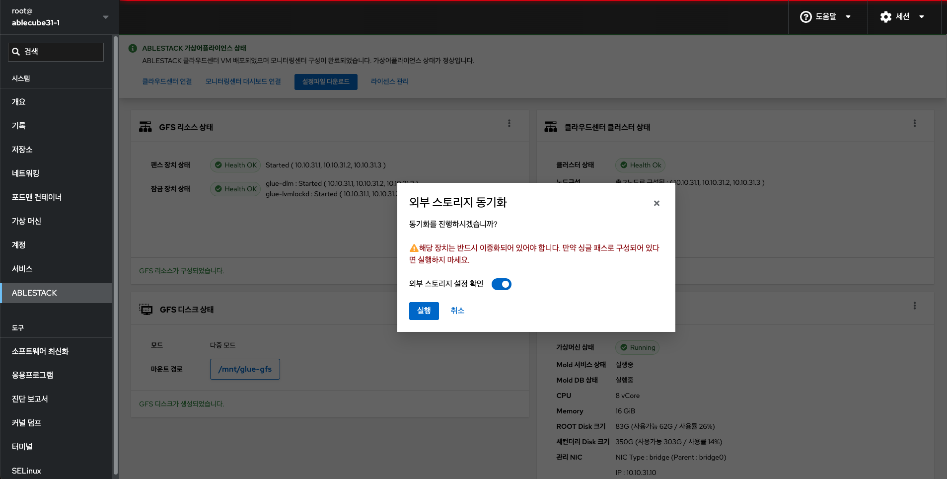- 실행 버튼을 클릭하여 외부 스토리지 동기화합니다.