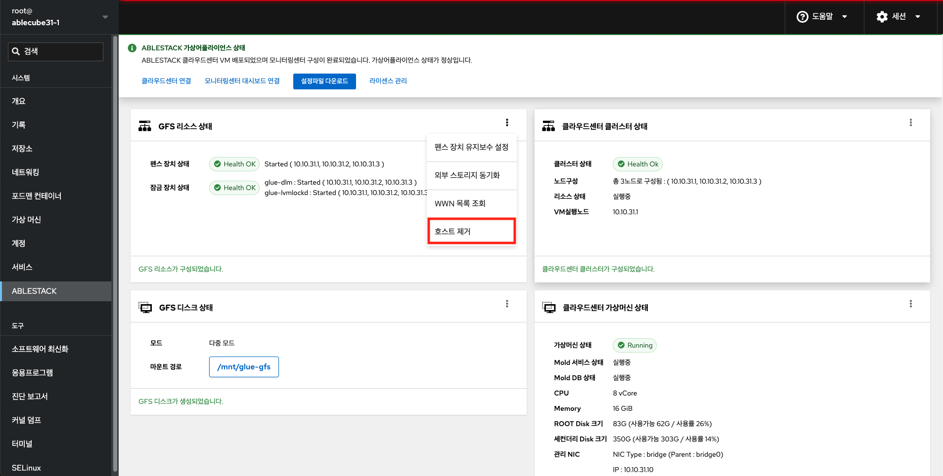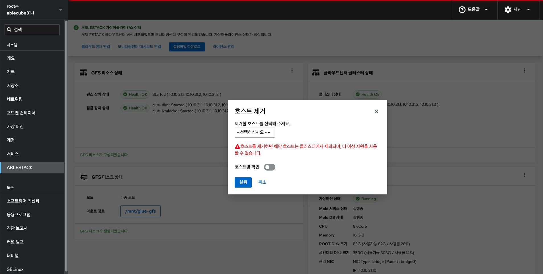 - 호스트를 제거하면 해당 호스트는 클러스터에서 제외되며, 더 이상 자원을 사용할 수 없습니다.