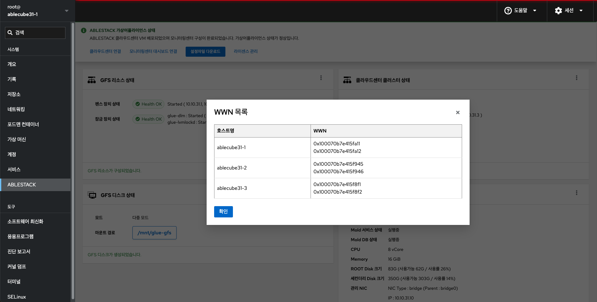 - 확인 버튼을 클릭하여 WWN 목록 팝업을 닫습니다.