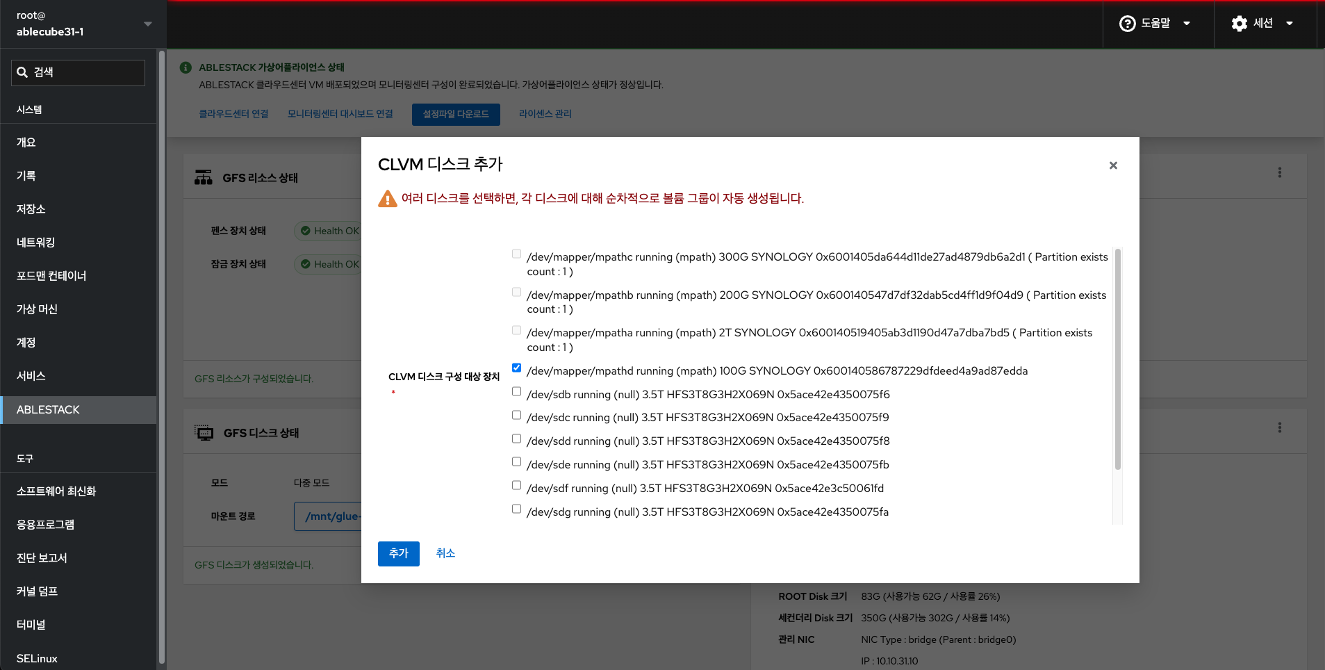 - CLVM 디스크 추가 팝업을 호출합니다.