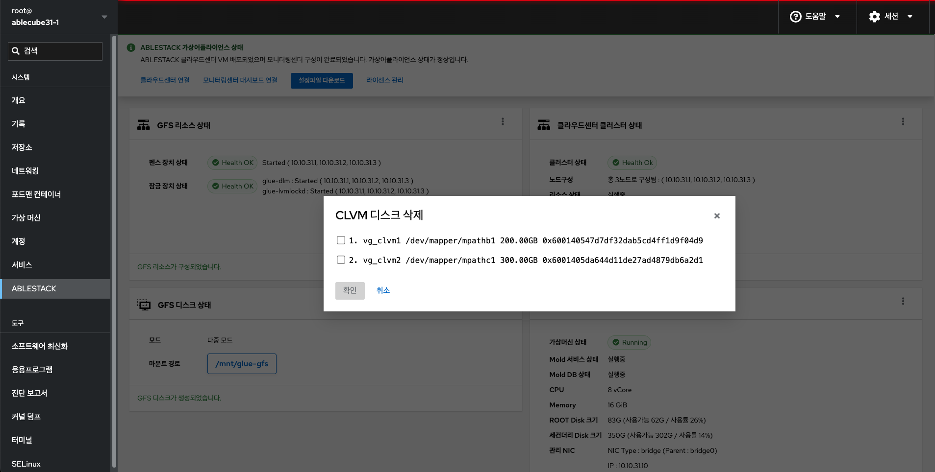 - 확인 버튼을 클릭하여 CLVM 디스크를 삭제합니다.