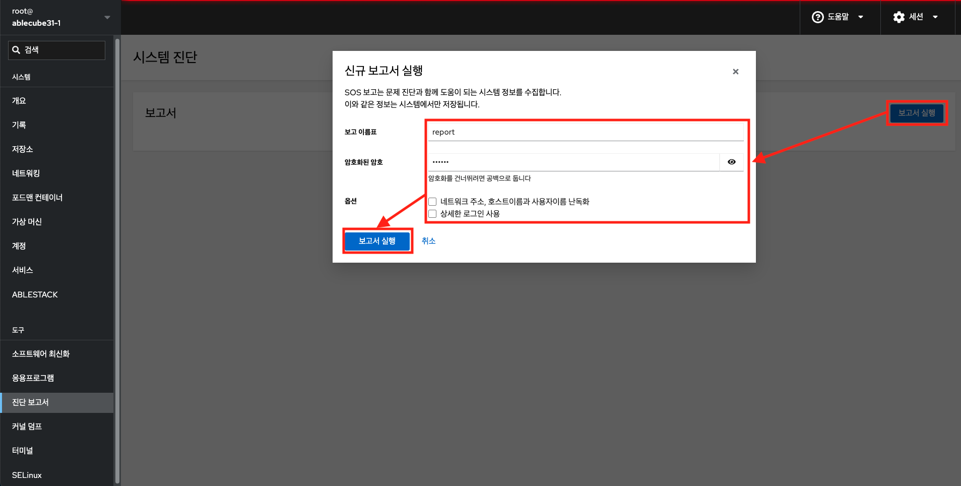 Cube 웹 콘솔에서 호스트의 시스템 구성 및 진단 정보를 수집하고 .xz 압축 형식으로 보고서를 로컬로 다운로드 할 수 있습니다.