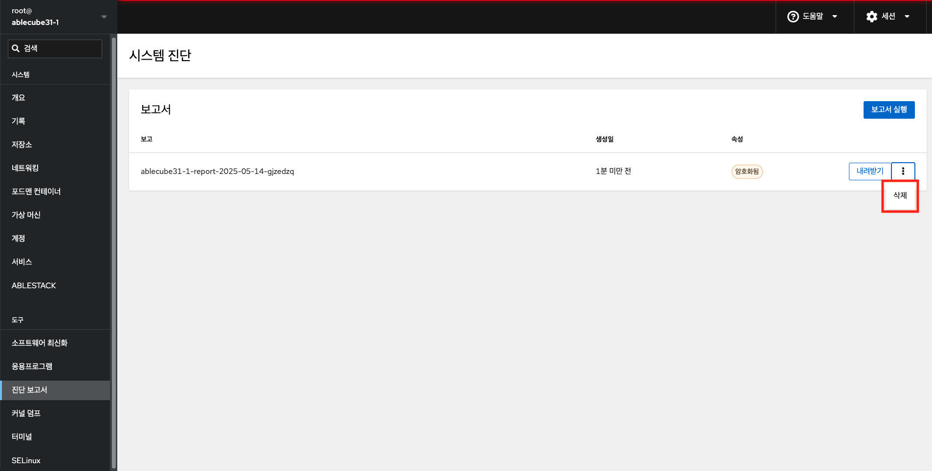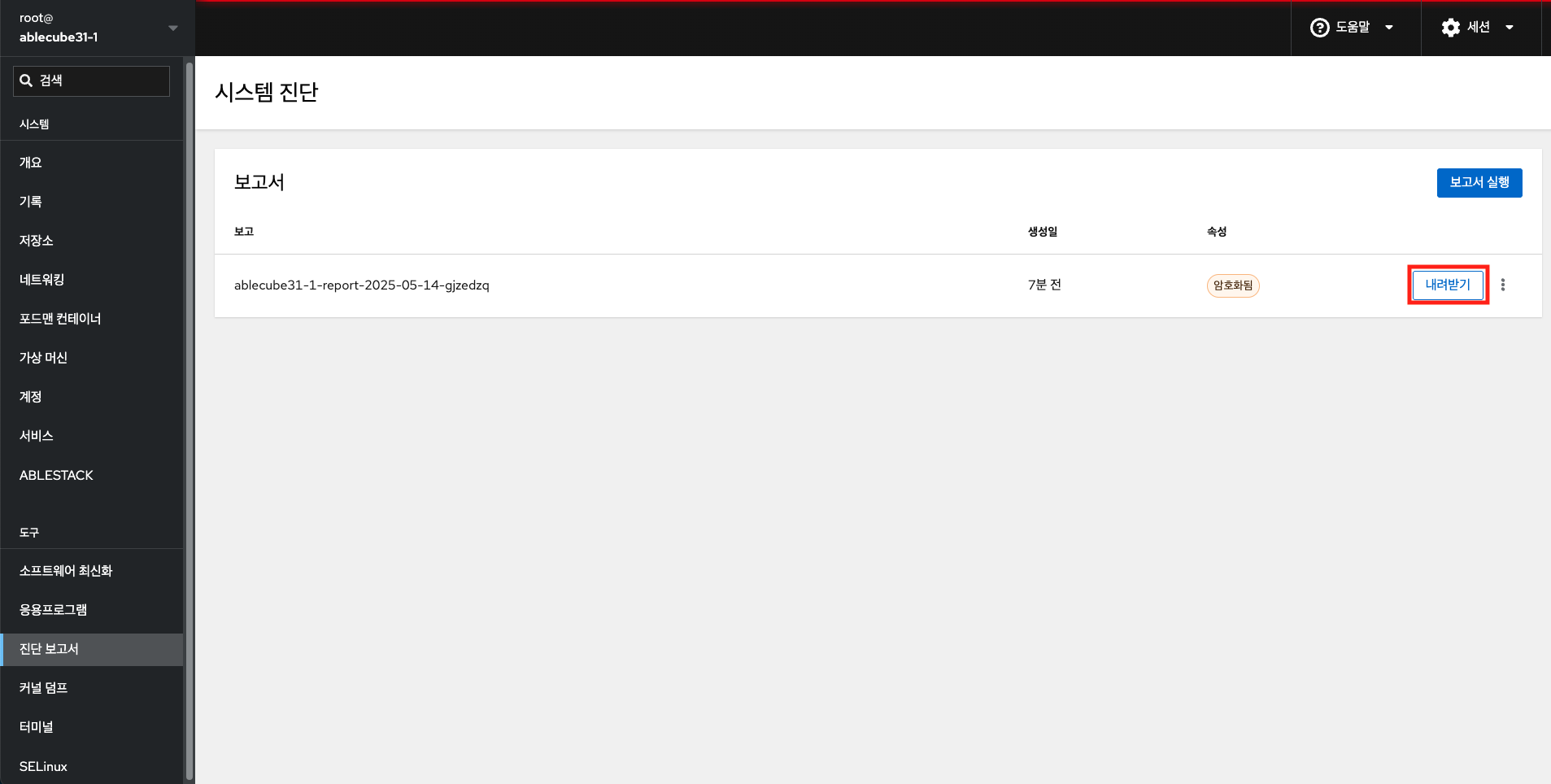 - 내려받기 버튼을 클릭하여 시스템 진단 보고서를 다운로드합니다.