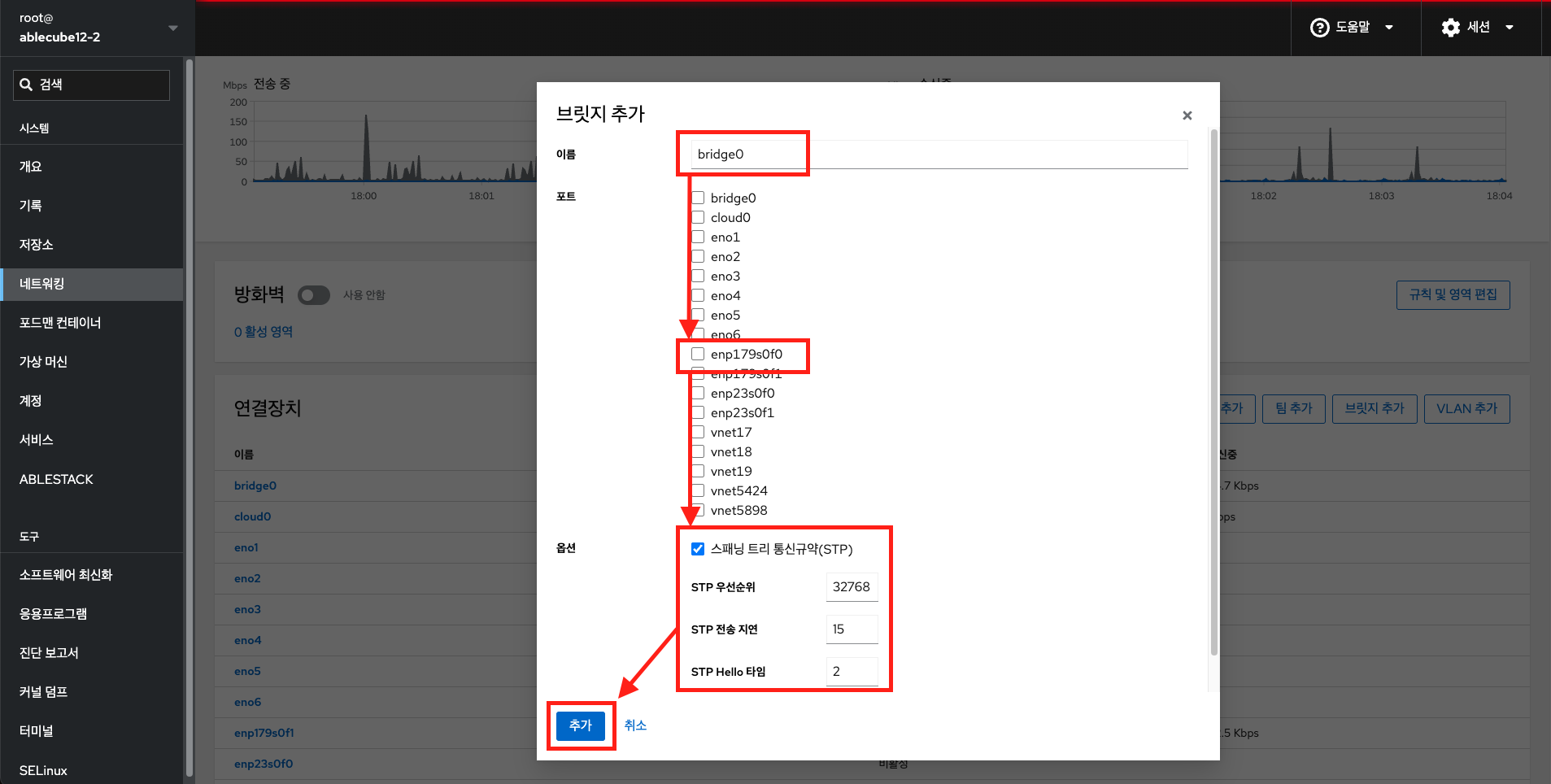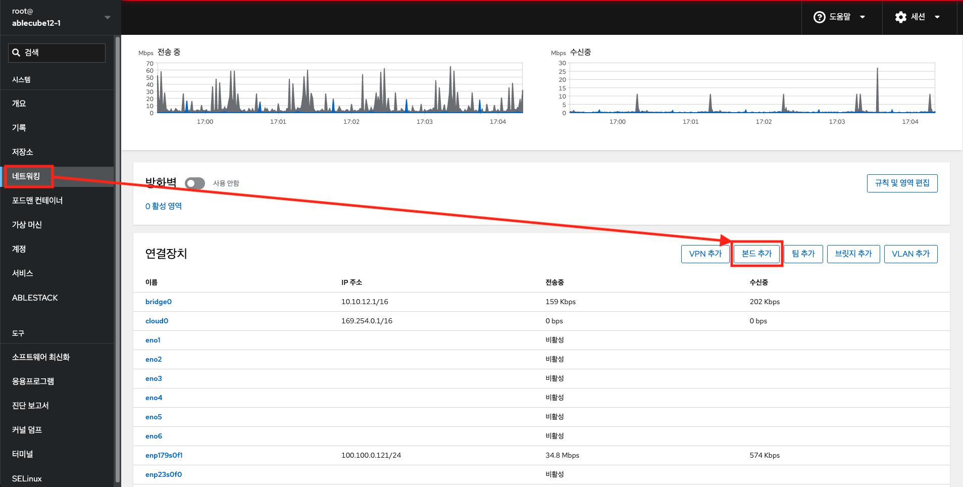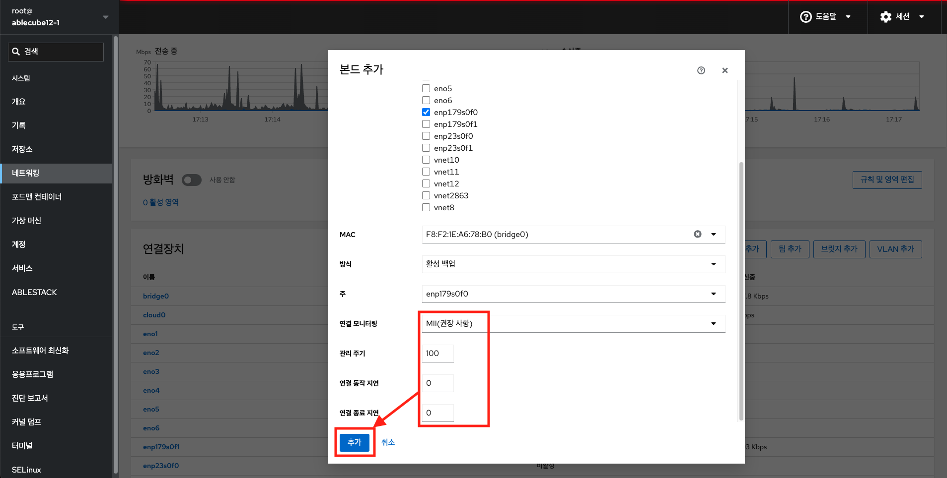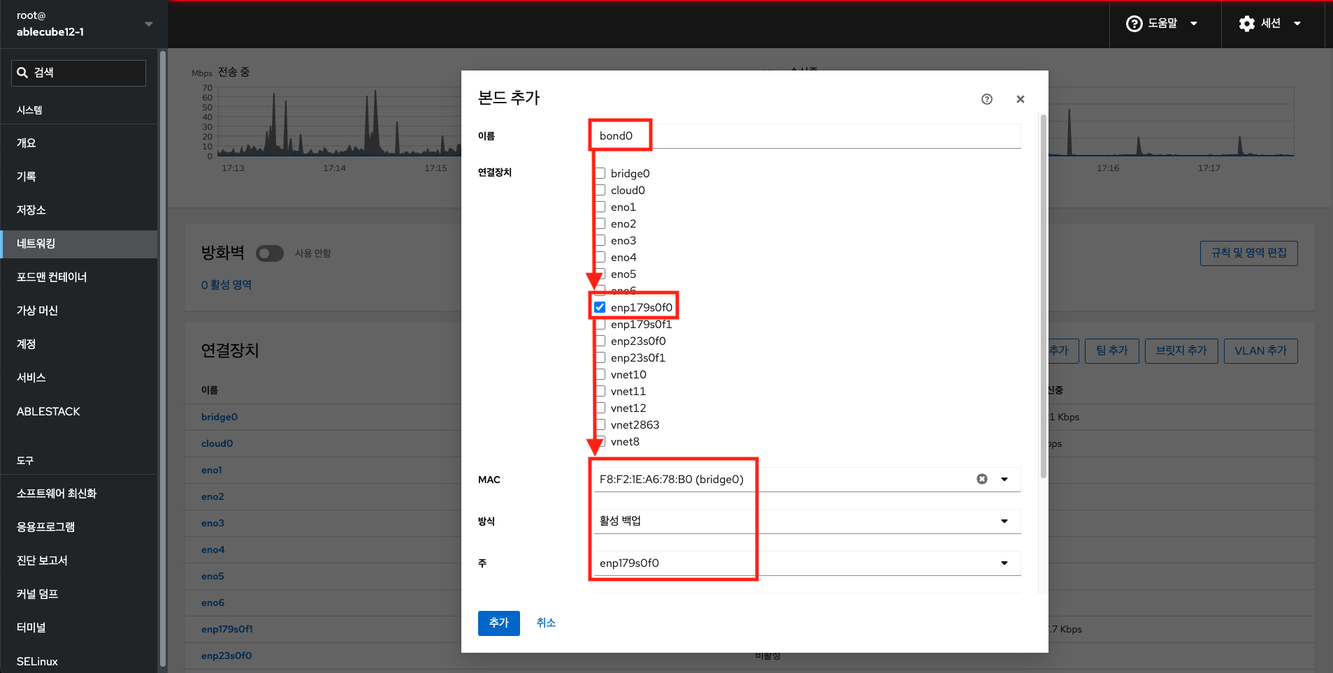 네트워크 본드는 여러 인터페이스를 포함할 수 있으며 언제든지 추가하거나 제거할 수 있습니다. Cube의 웹 콘솔에서 기존 본드에 네트워크 인터페이스를 추가합니다.