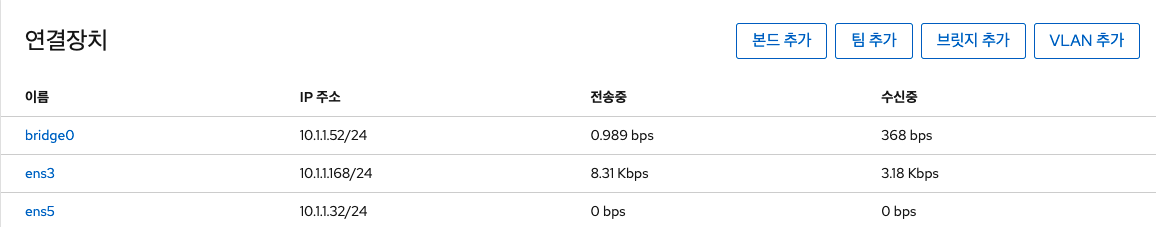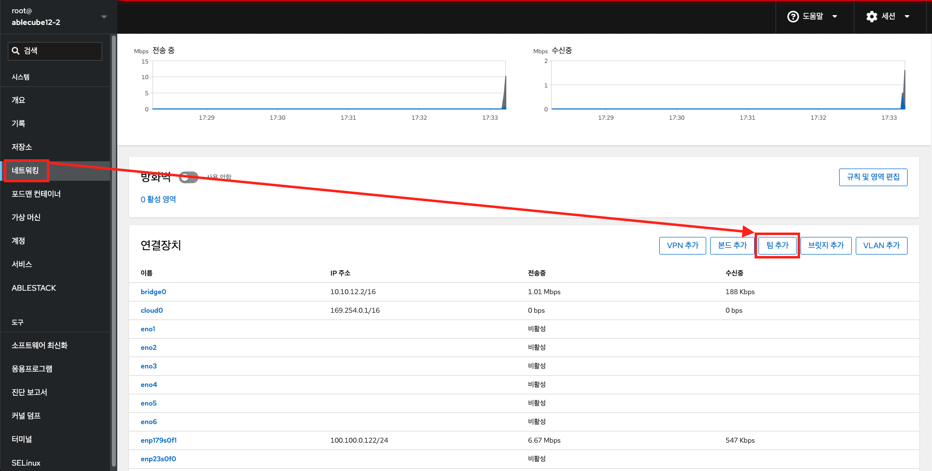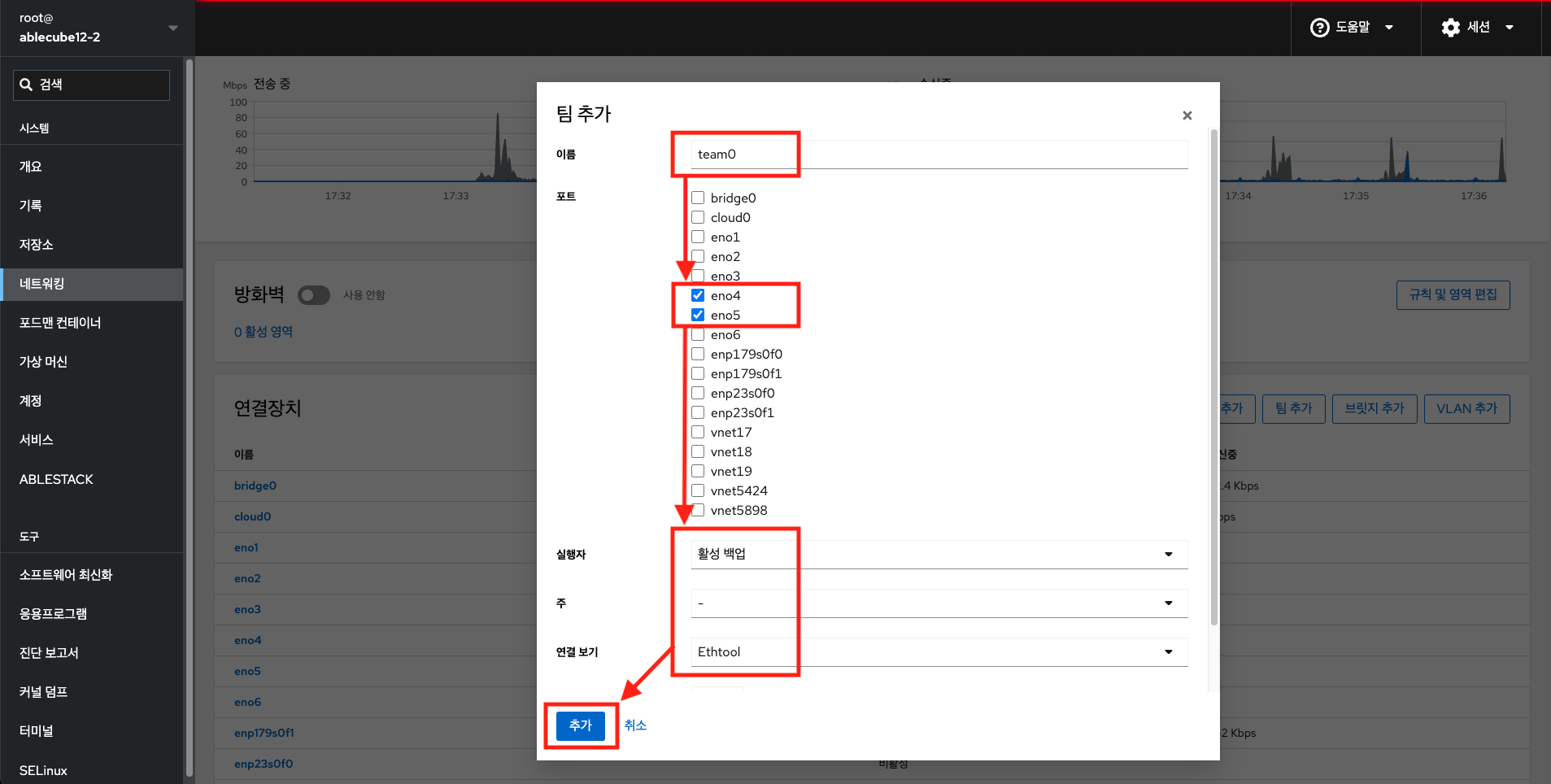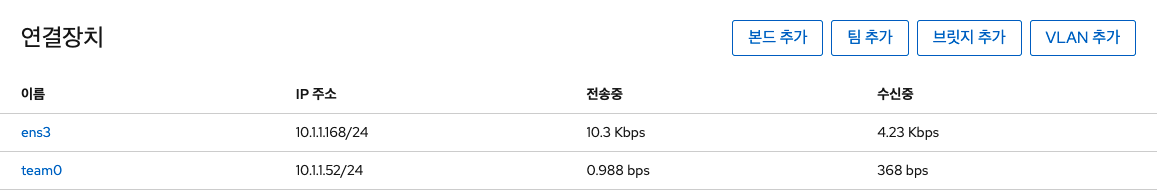 - 기존 네트워크 팀에 새 인터페이스 추가