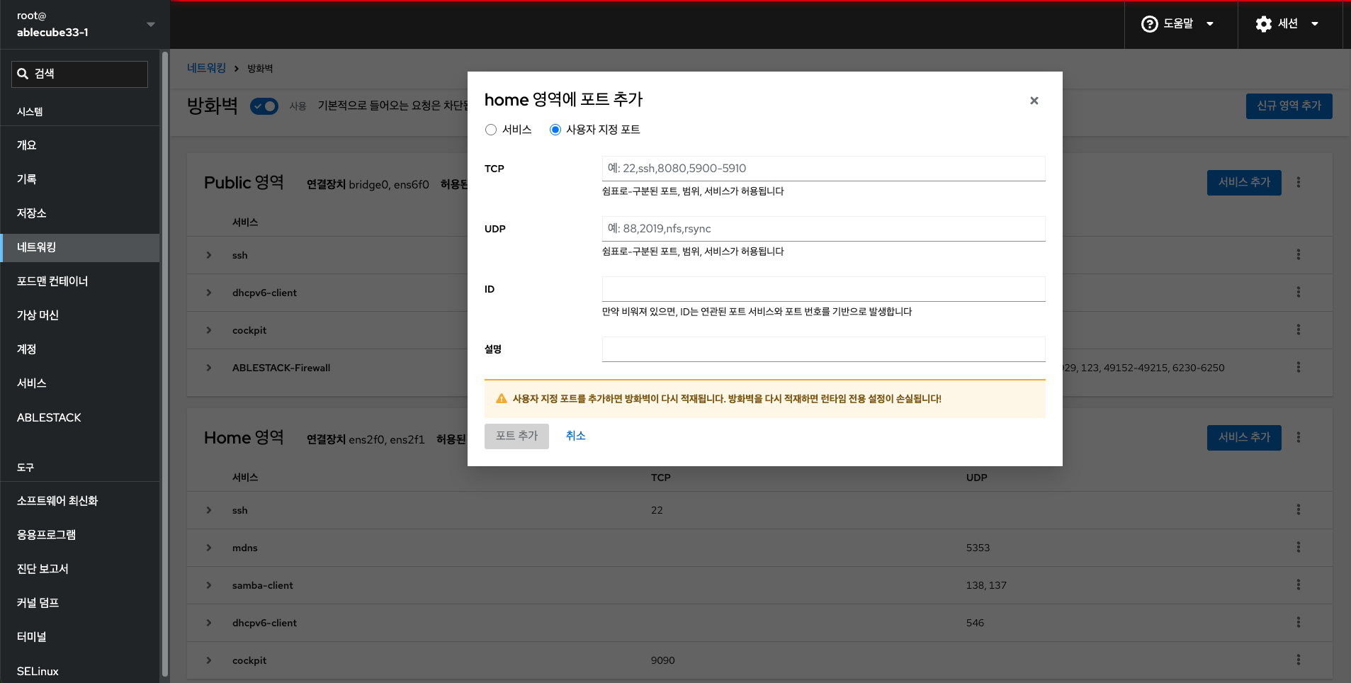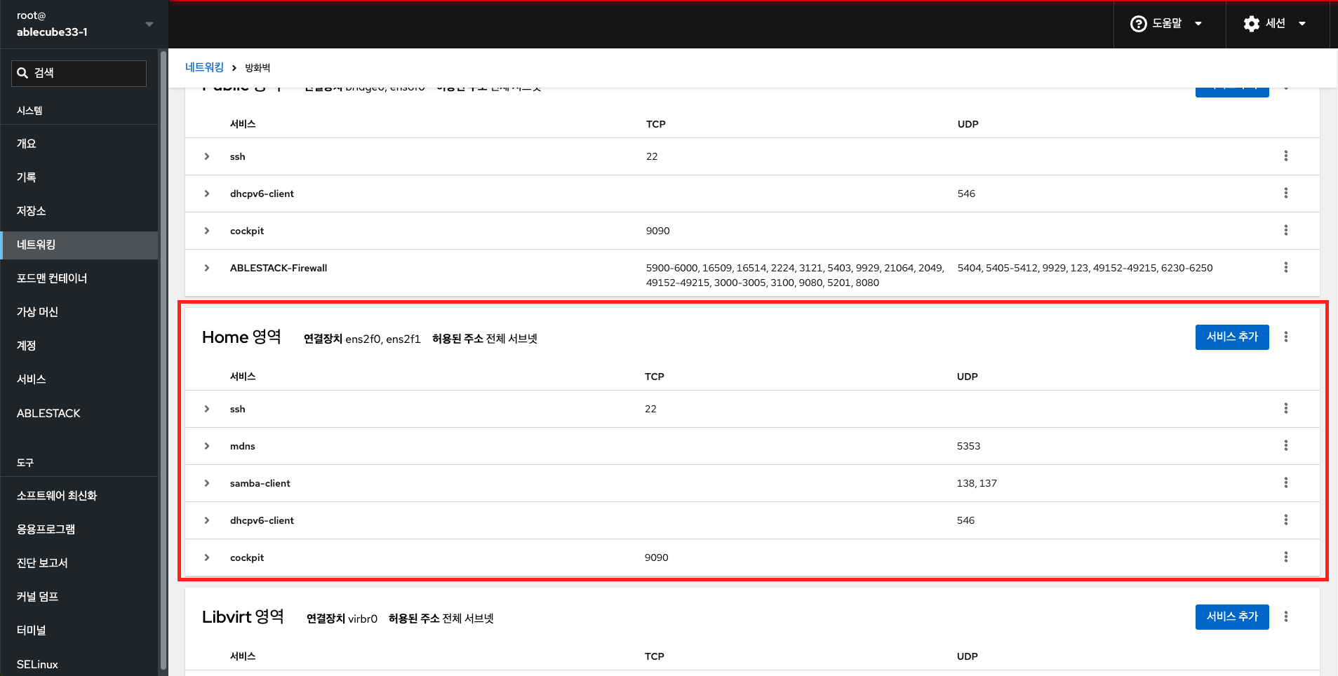 Cube의 웹 콘솔은 firewalld 서비스의 주요 기능을 구현하며 다음을 수행할 수 있습니다.