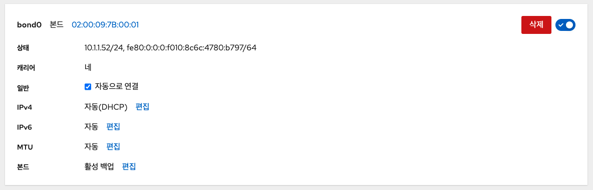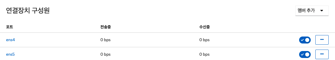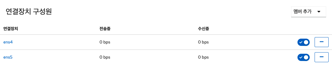 네트워크 본드는 여러 인터페이스를 포함할 수 있습니다. 장치를 변경해야하는 경우 본드에서 특정 인터페이스를 제거하거나 비활성화할 수 있습니다.