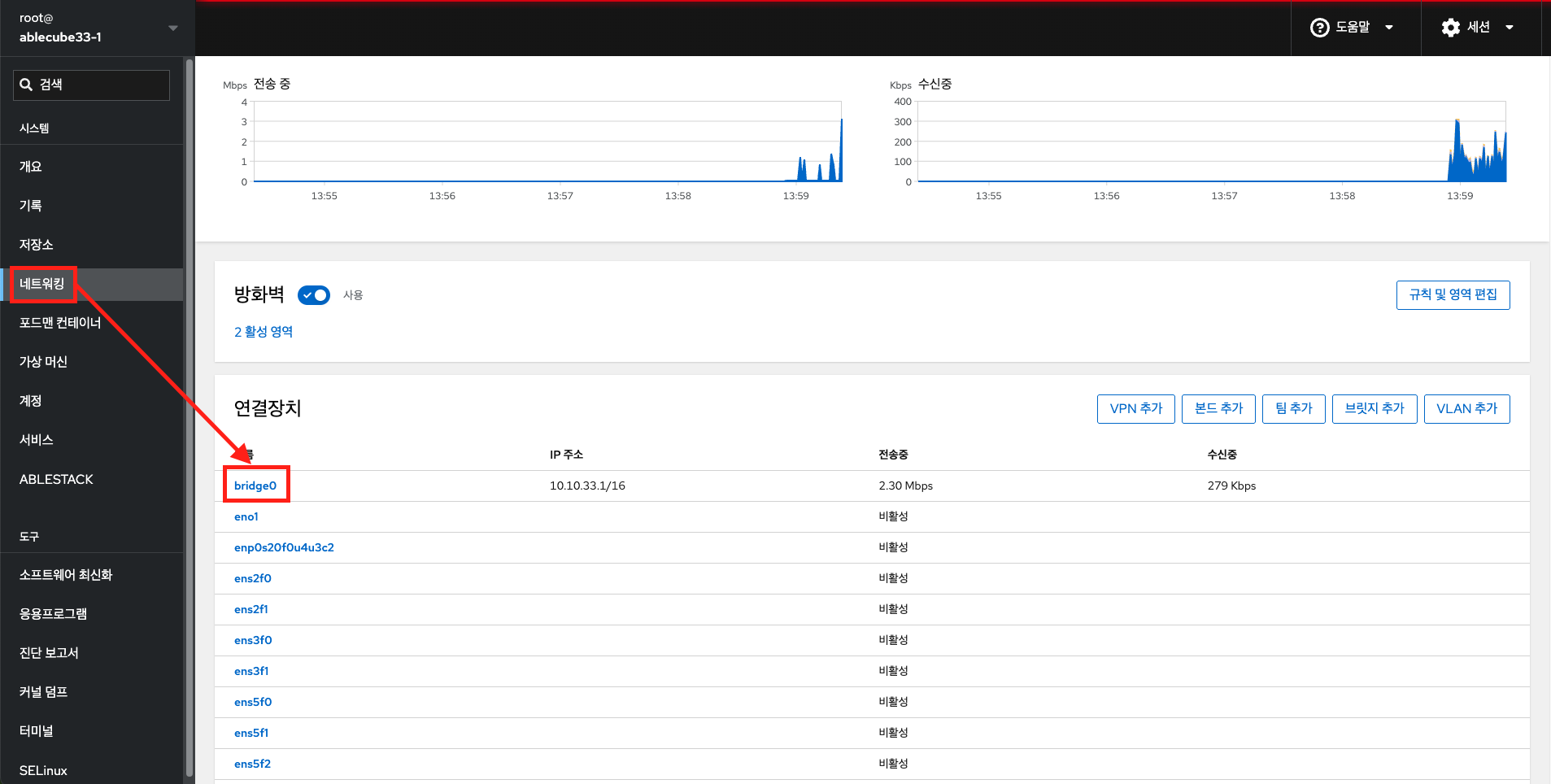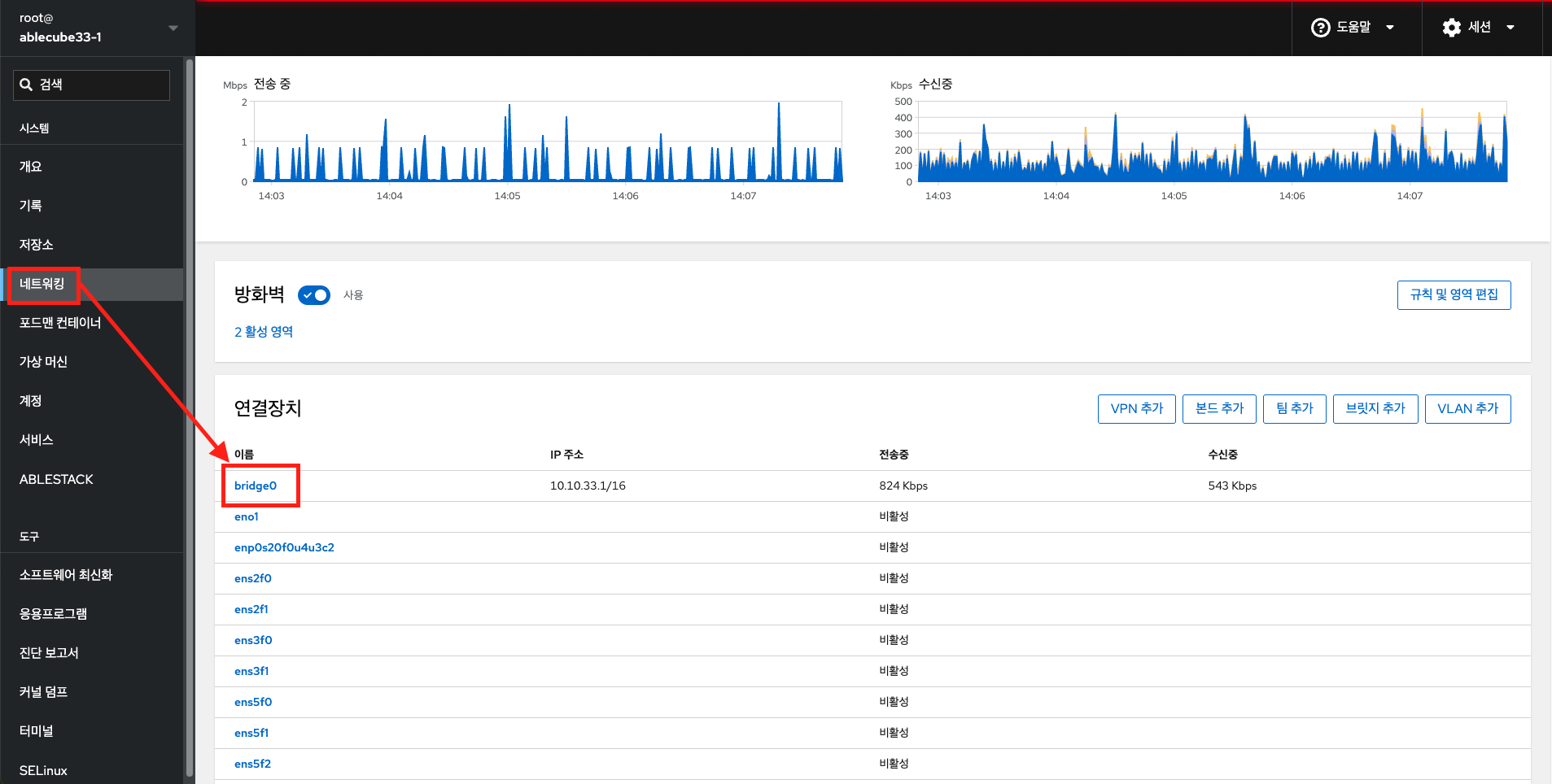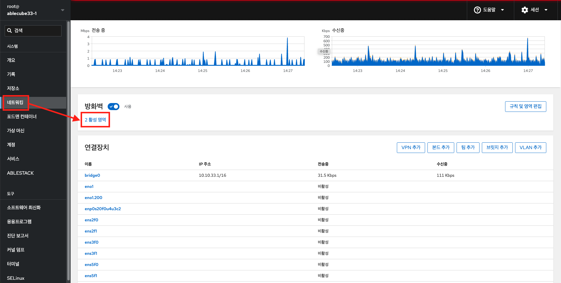 - 방화벽 상자가 보이지 않으면 관리자 권한으로 Cube의 웹 콘솔에 로그인하십시오.