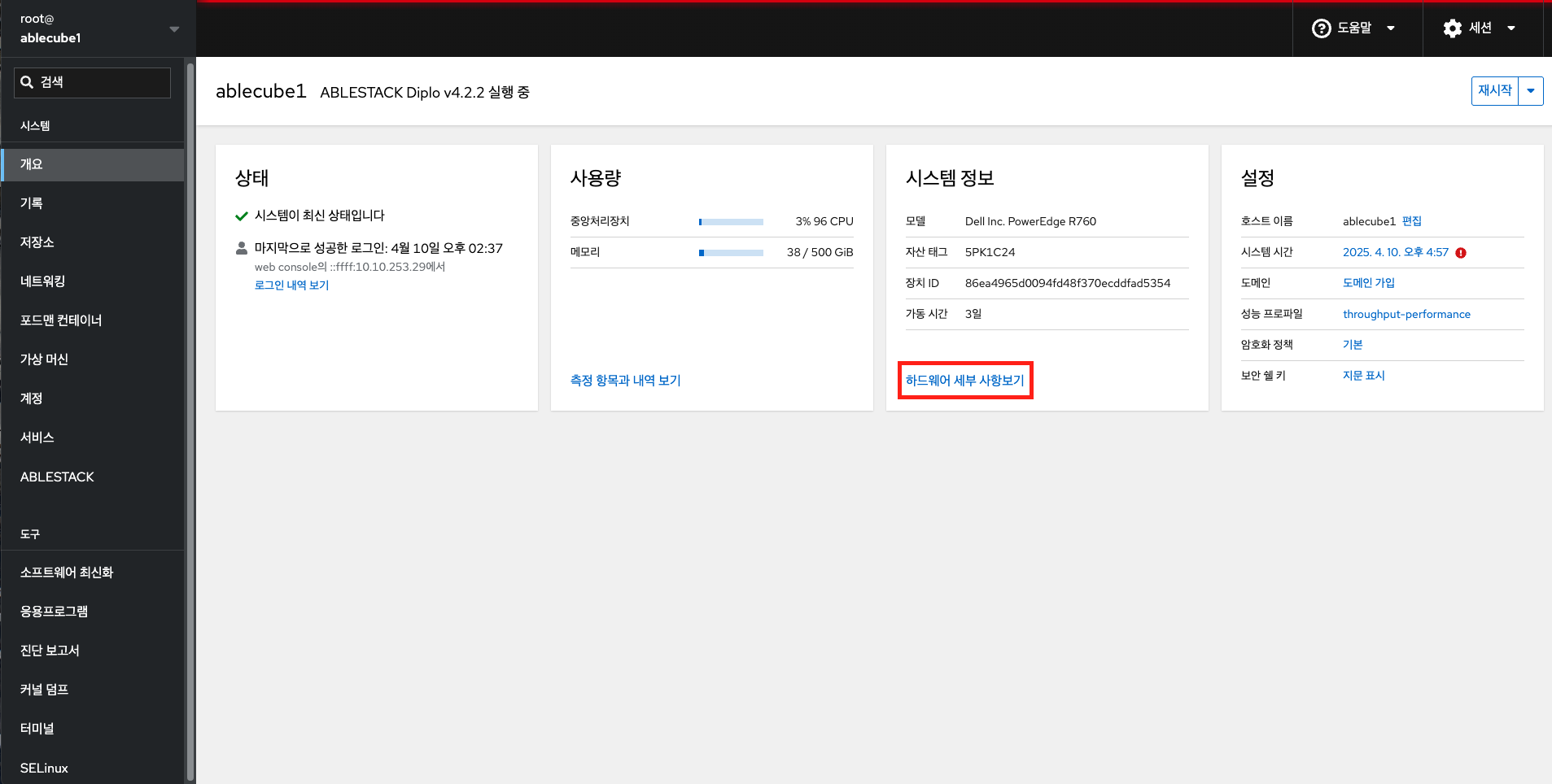 하드웨어 세부 사항보기¶
