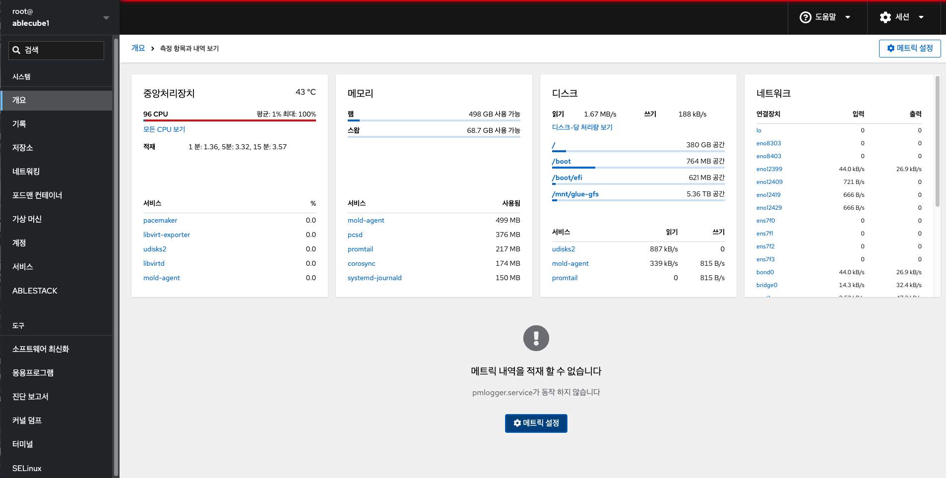 - CPU , 메모리, 디스크, 네트워크 카드의 메트릭 정보를 확인합니다.