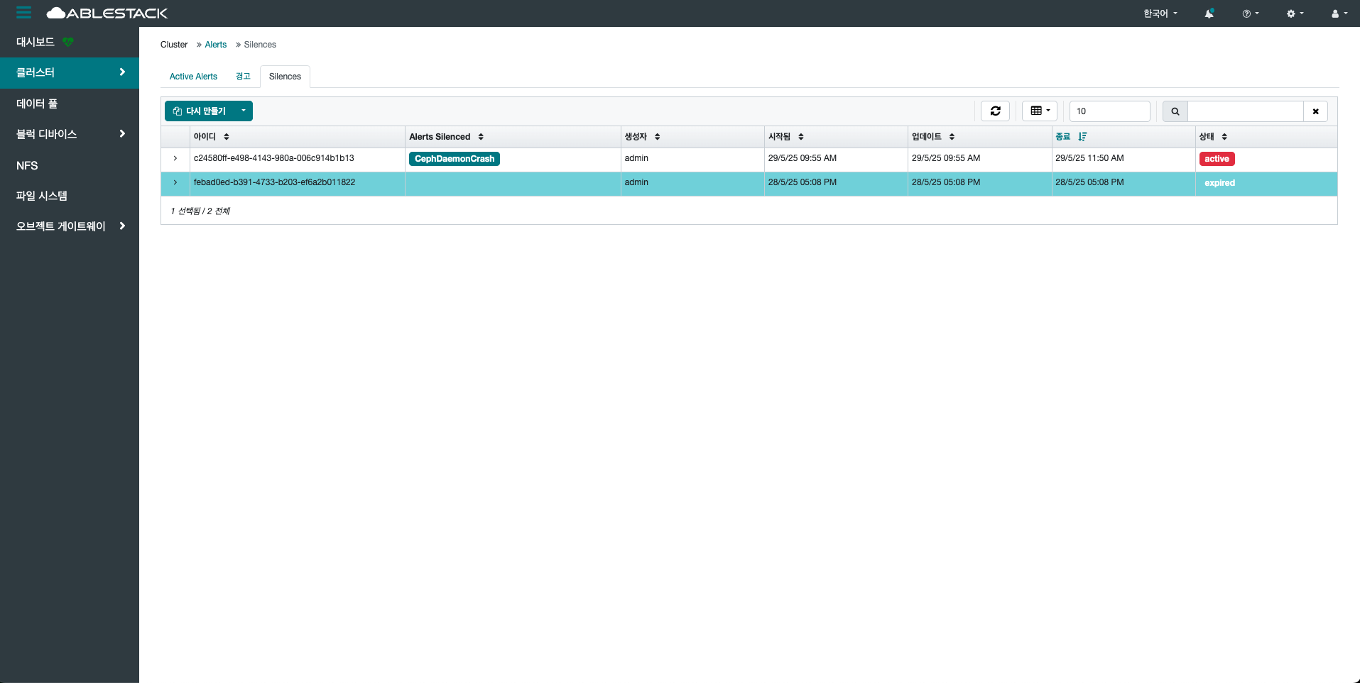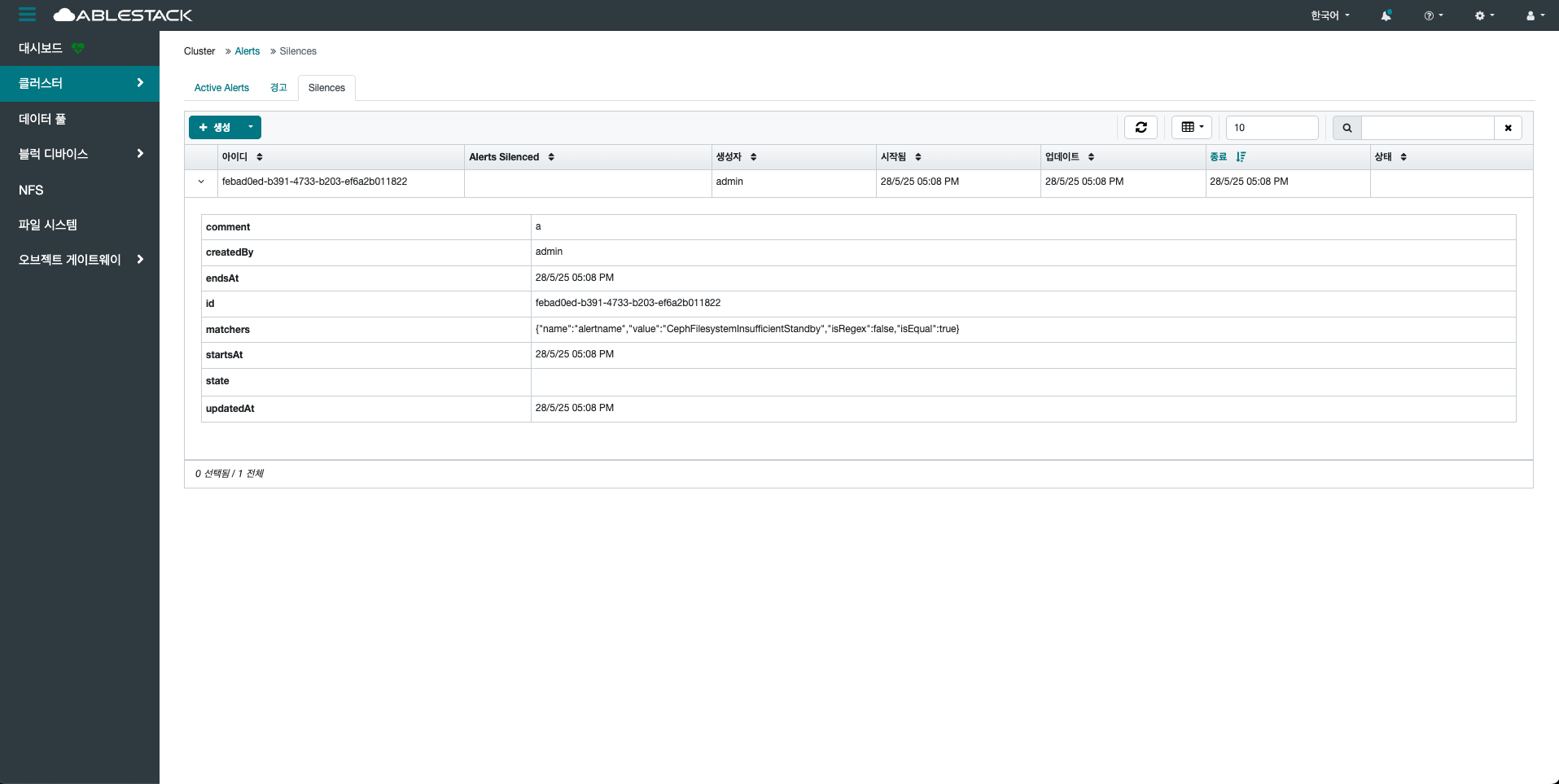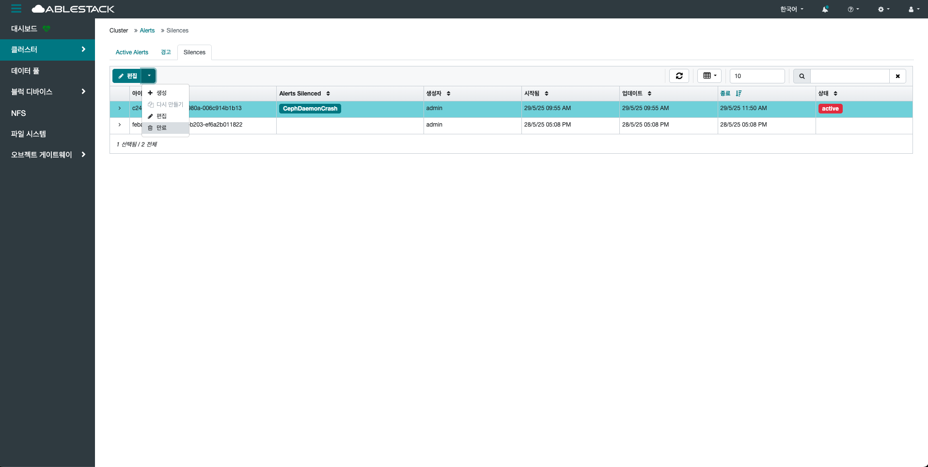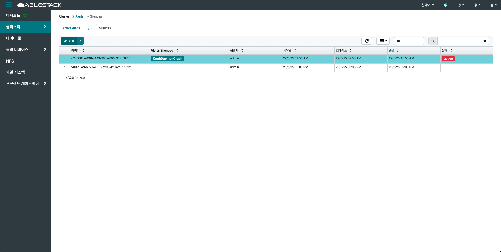 - 상태가 active인 Silence를 선택하여 편집 버튼을 클릭합니다.