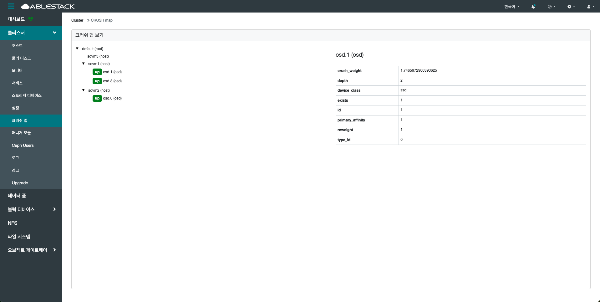 클러스터의 데이터가 어떻게 저장되고 복제될지를 정의하는 핵심 알고리즘 기반의 맵입니다. 전통적인 중앙 디렉터리 방식과 달리, CRUSH는 분산 방식으로 클라이언트가 직접 데이터를 어디에 저장할지 계산하게 해줍니다.