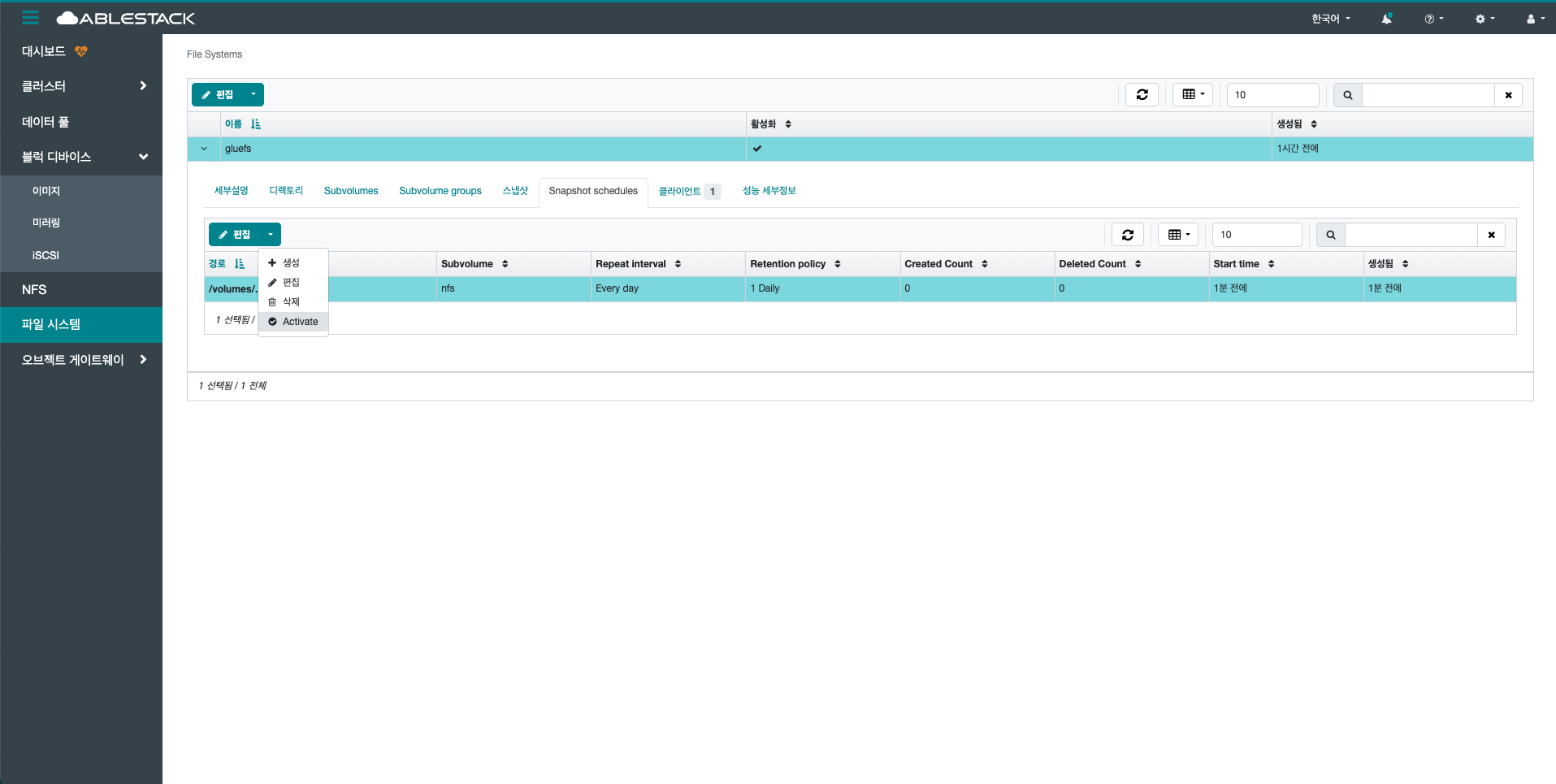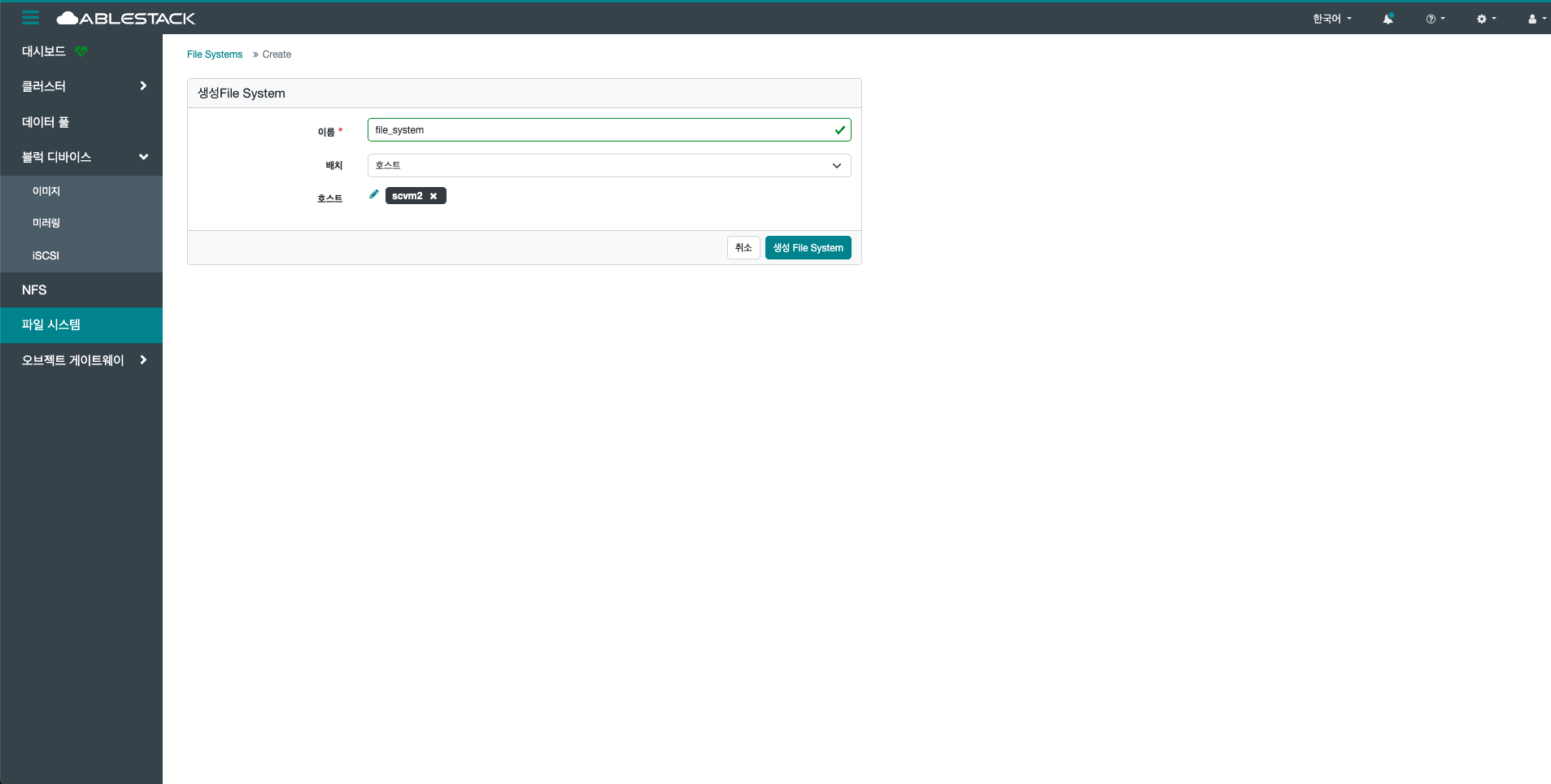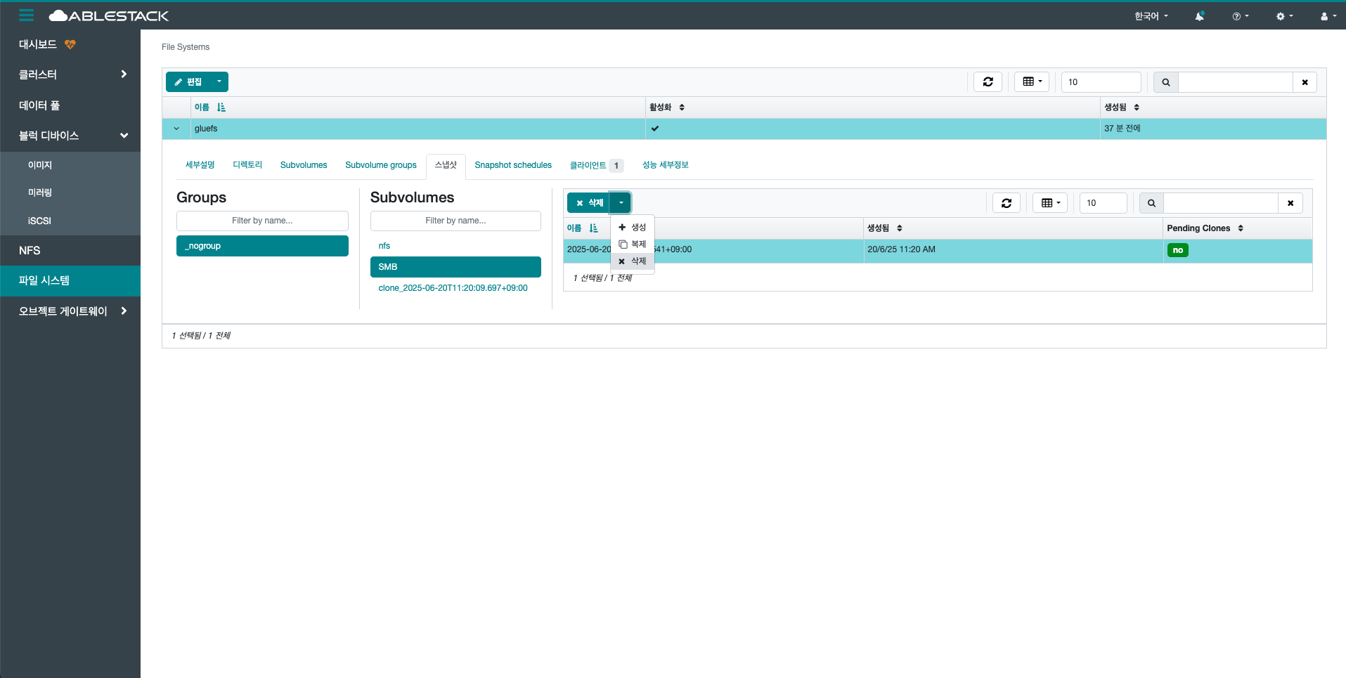 선택한 File System을 삭제합니다.