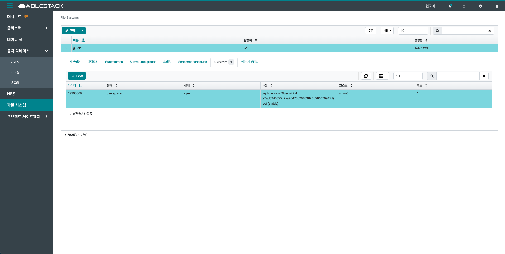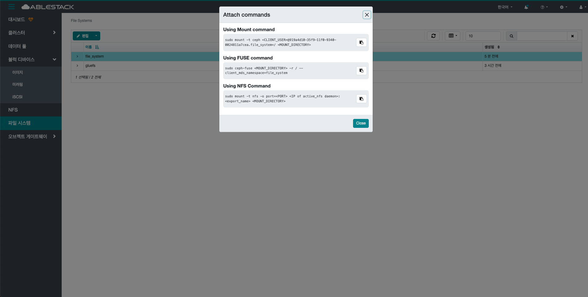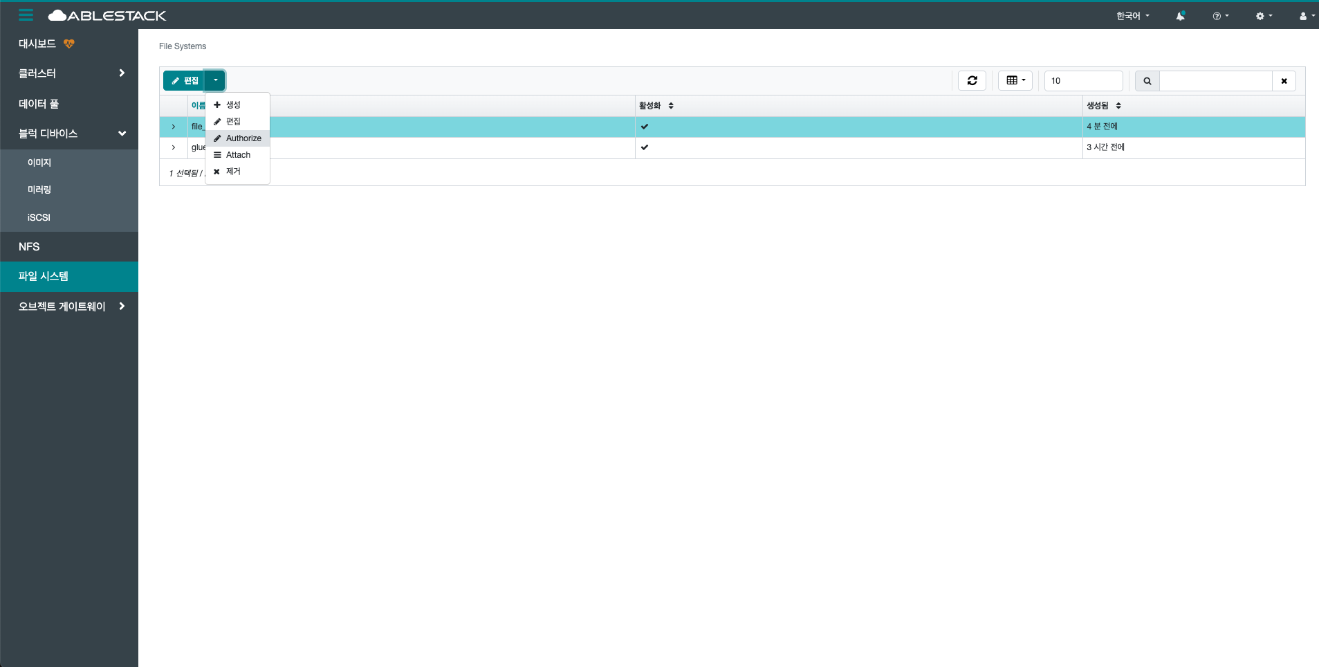 선택한 File System을 삭제합니다.