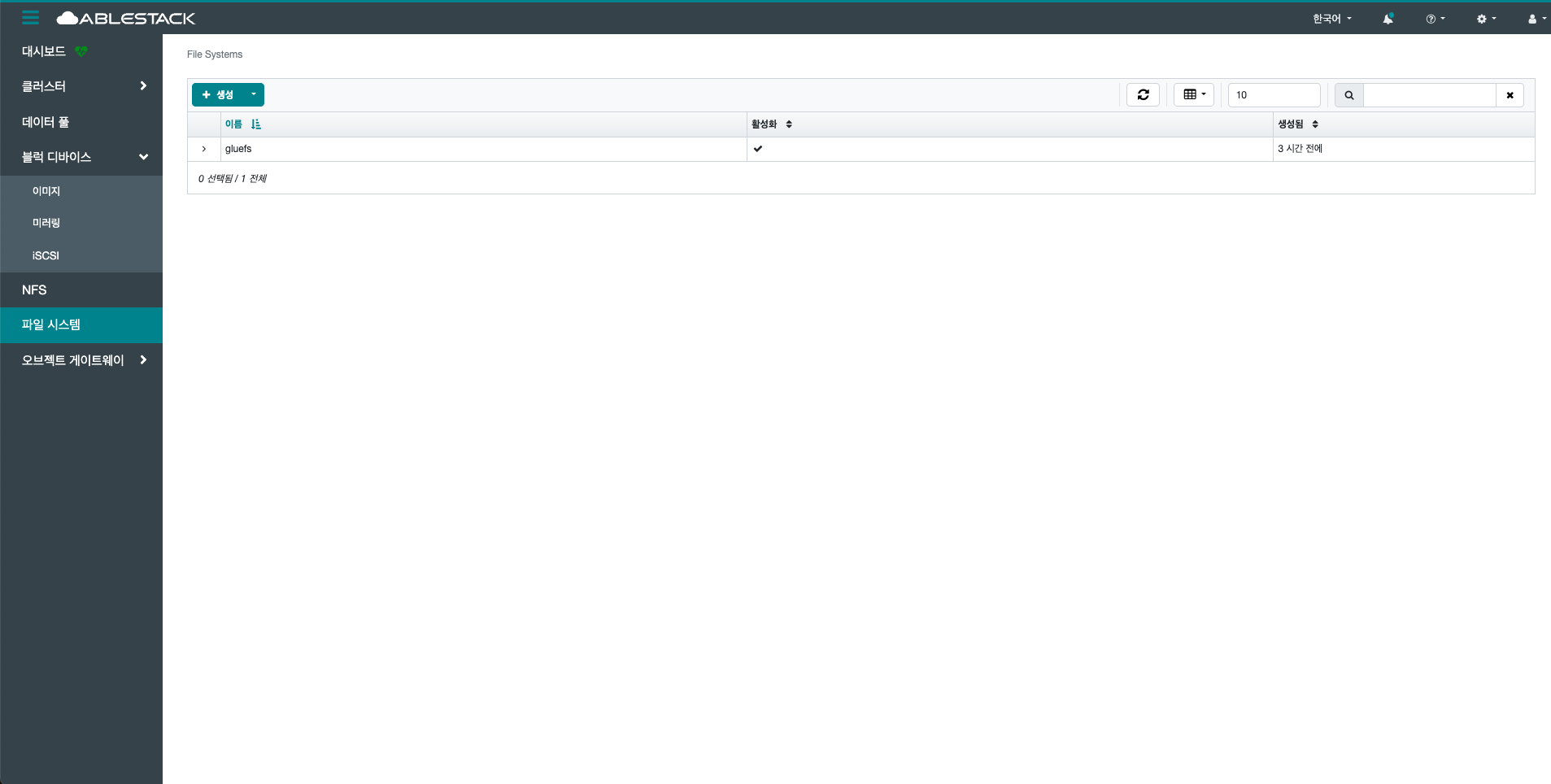 - 생성 File System 버튼을 클릭하여 생성합니다.