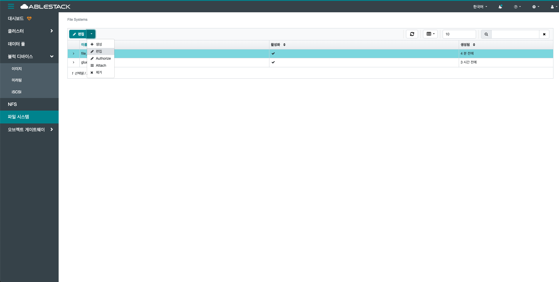 - 목록에서 편집할 File System을 선택합니다.