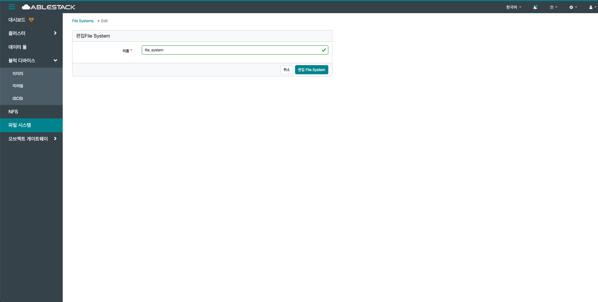 선택한 File System의 정보를 편집합니다.