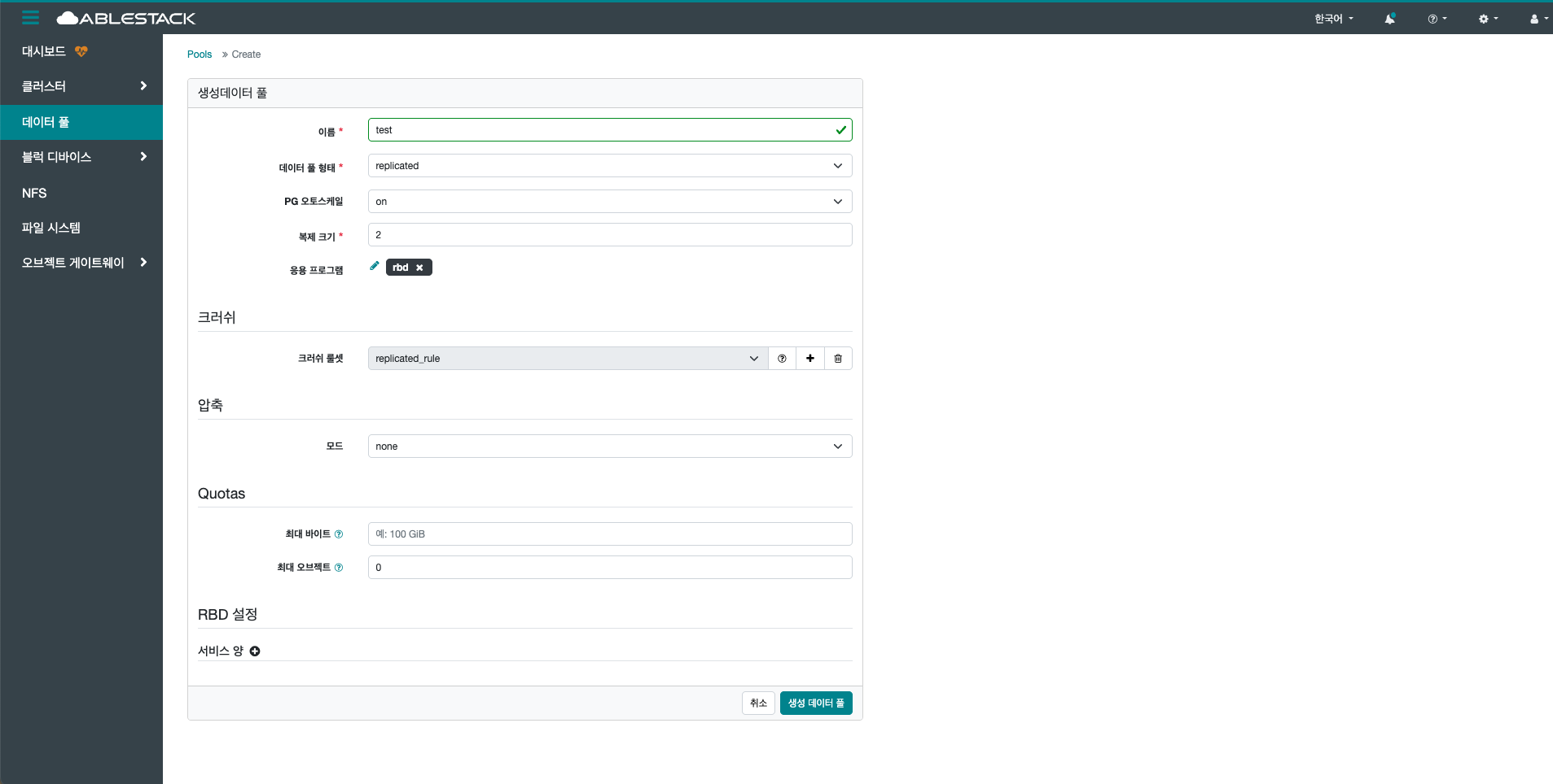 - 복제 크기: 복제 크기를 입력합니다. (기본은 2벌 복제 입니다.)