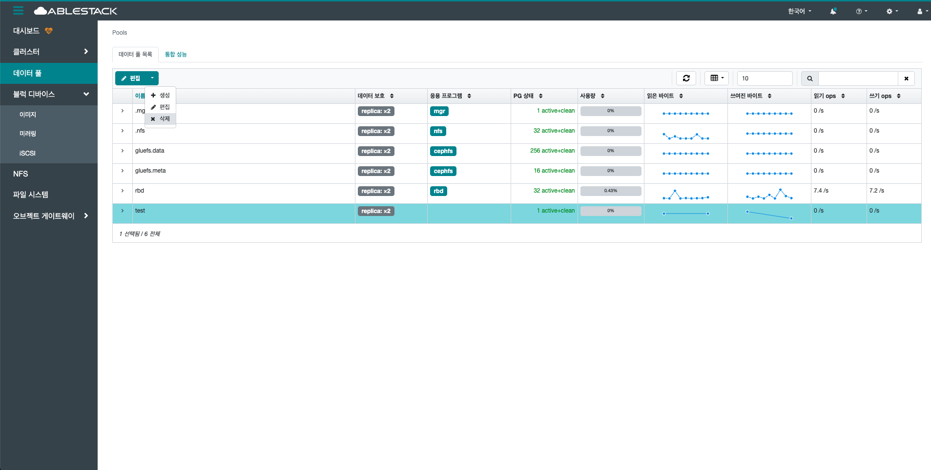 - 목록에서 삭제할 데이터 풀을 선택합니다.