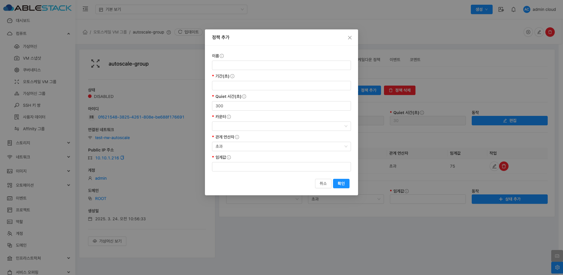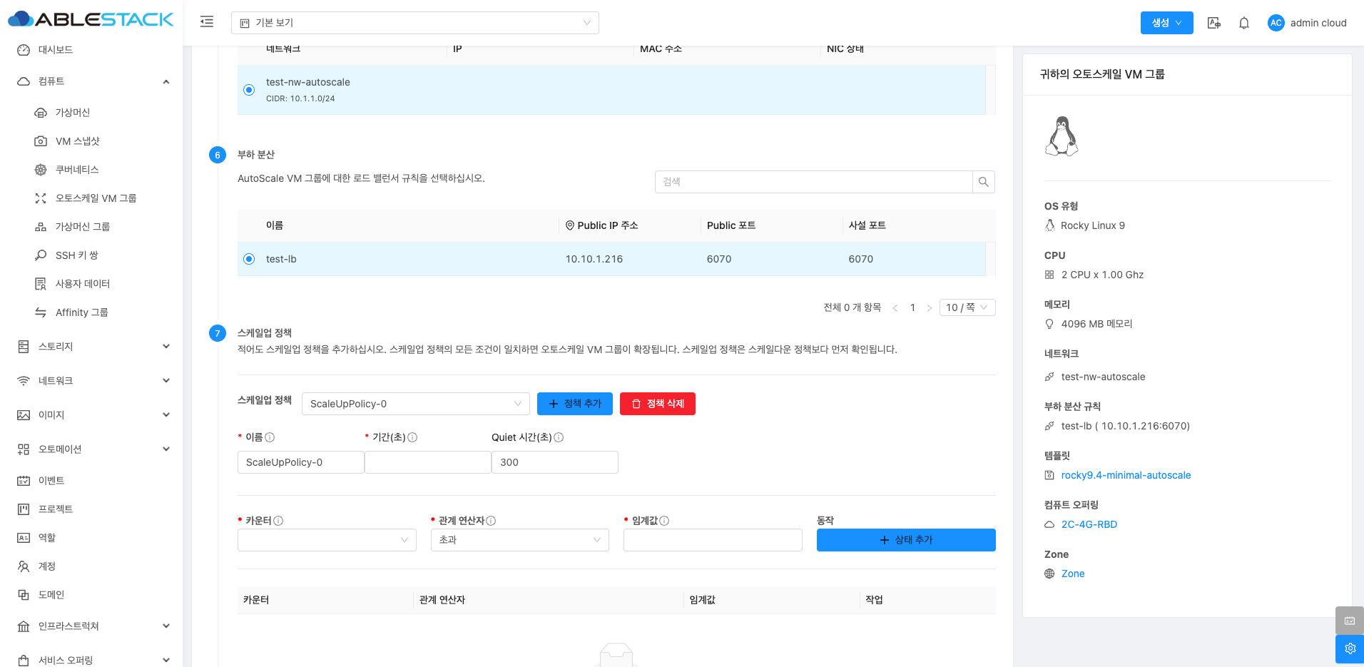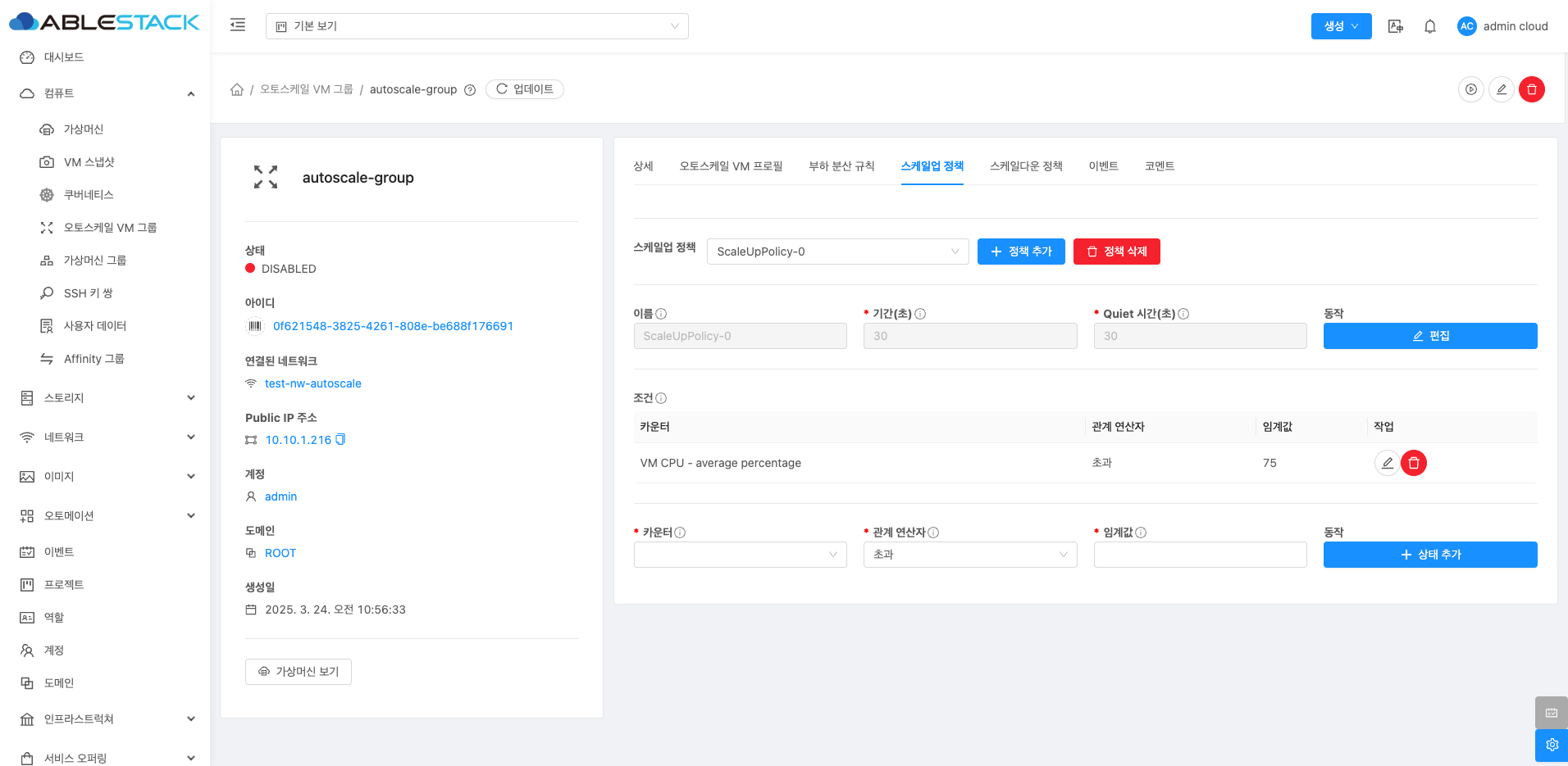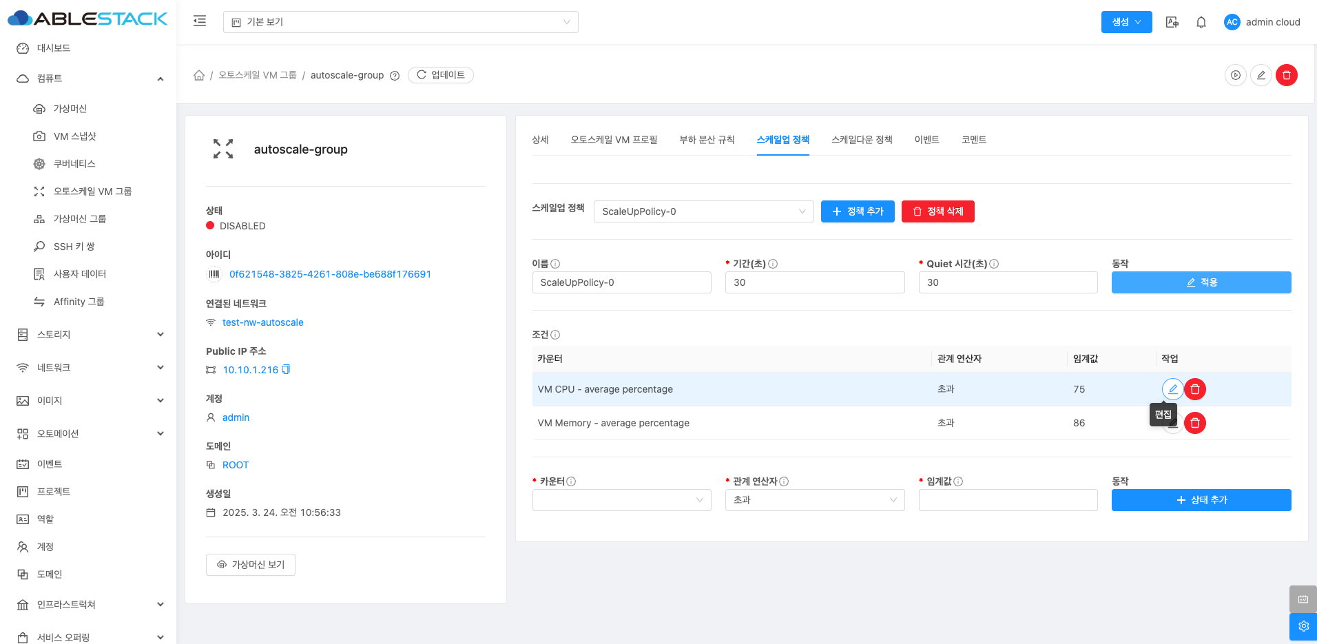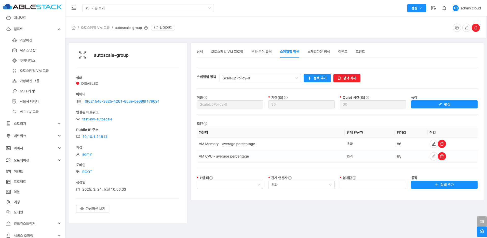오토스케일 VM 그룹 스케일업 정책 탭¶
