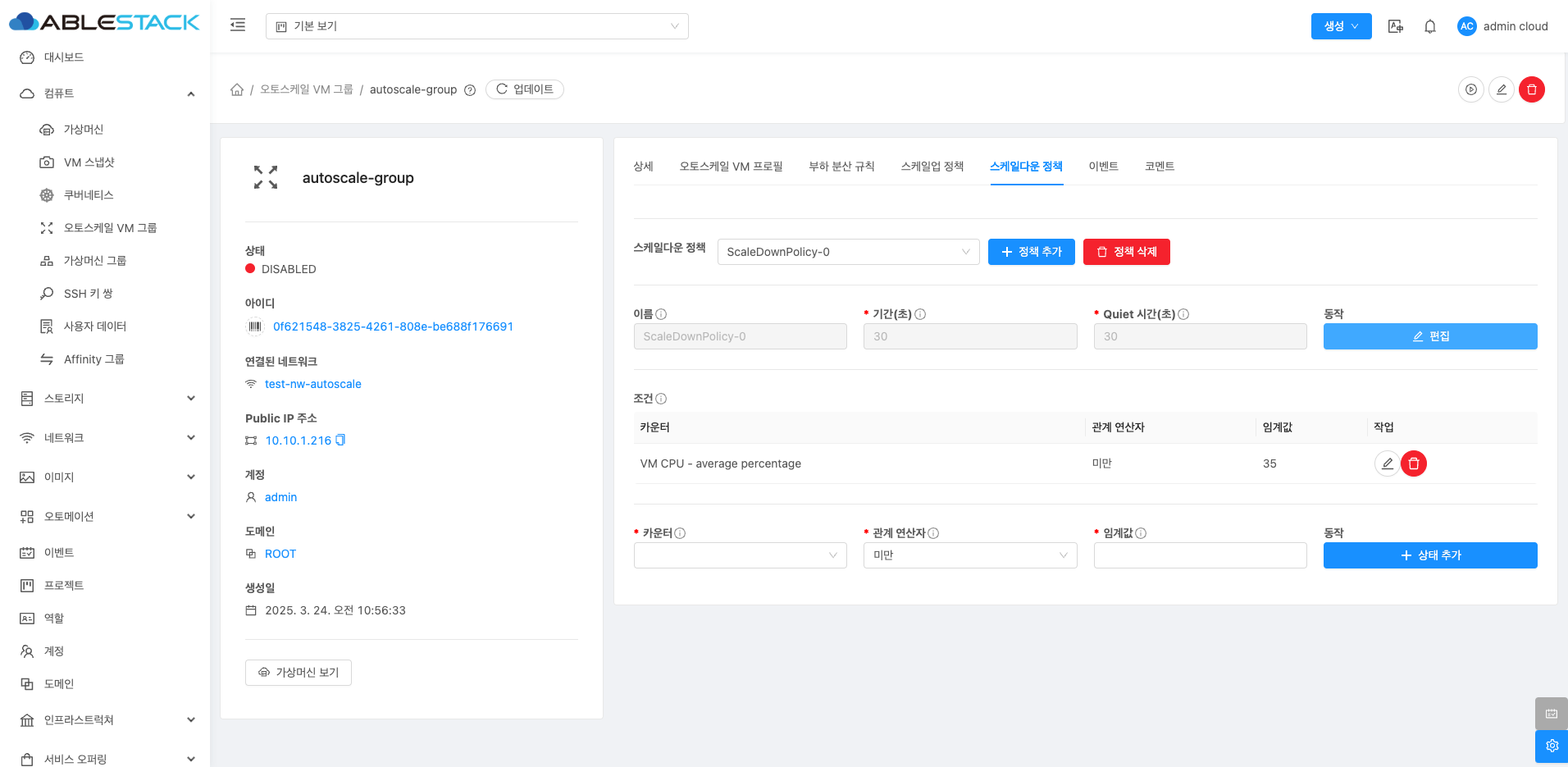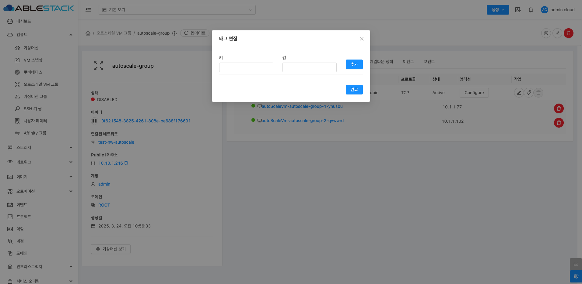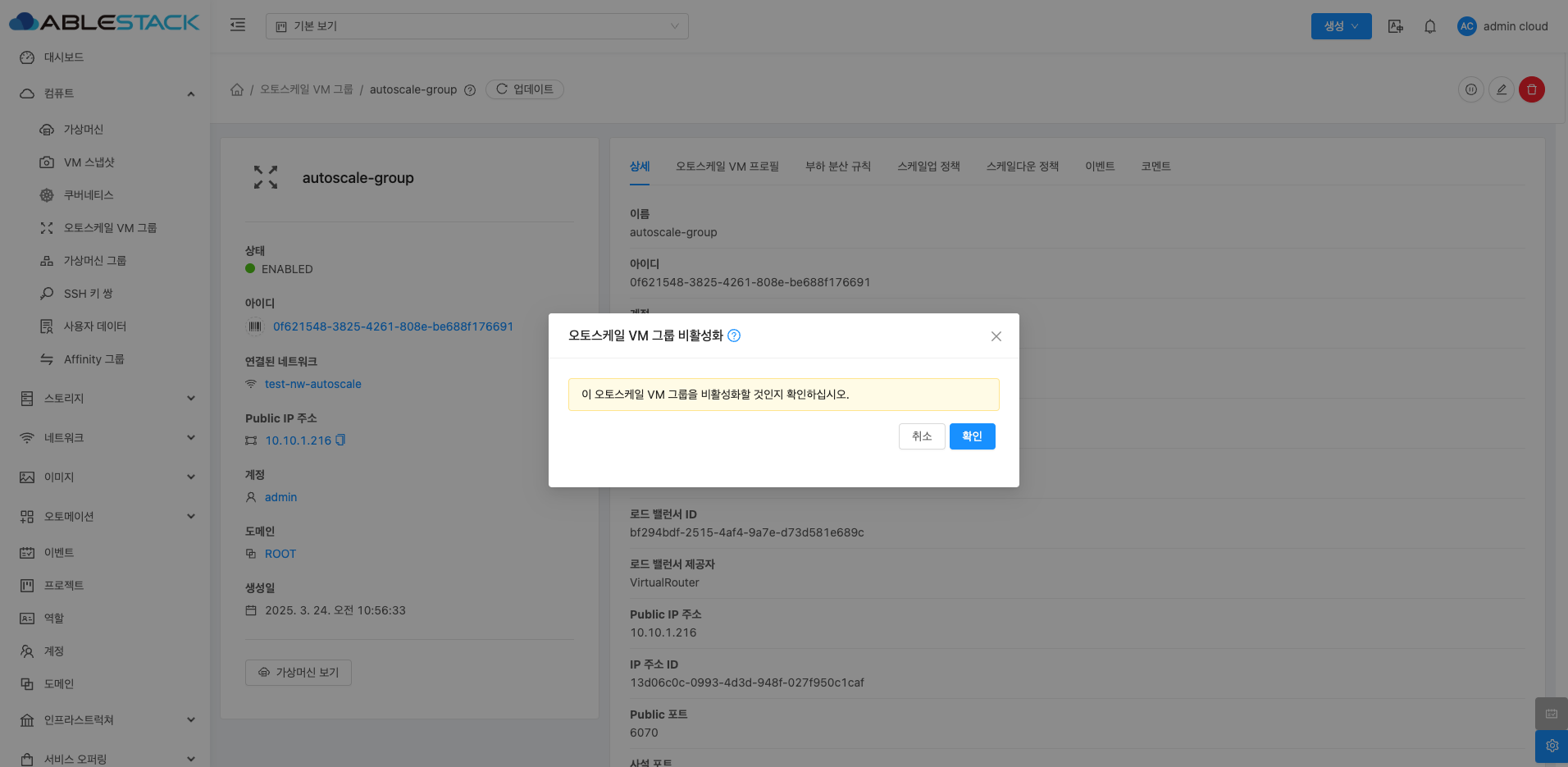 오토스케일 VM 그룹 비활성화¶