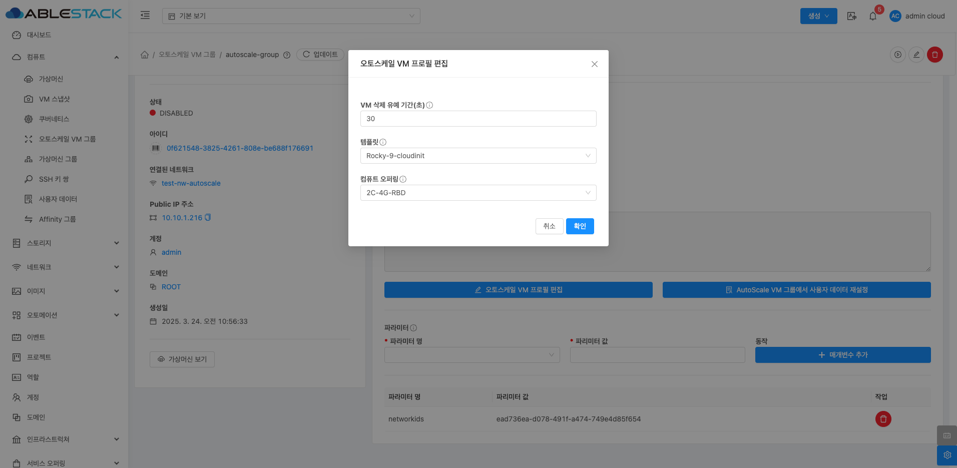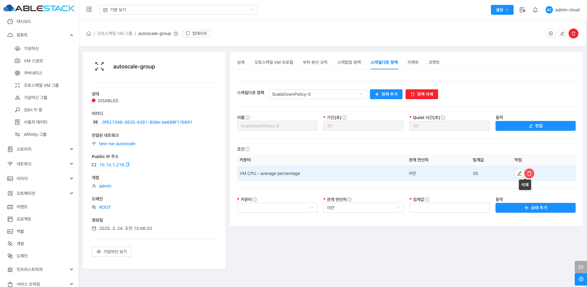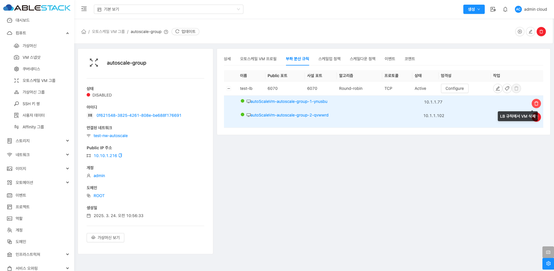 오토스케일 VM 그룹 비활성화¶