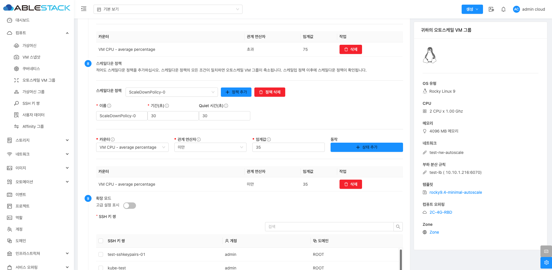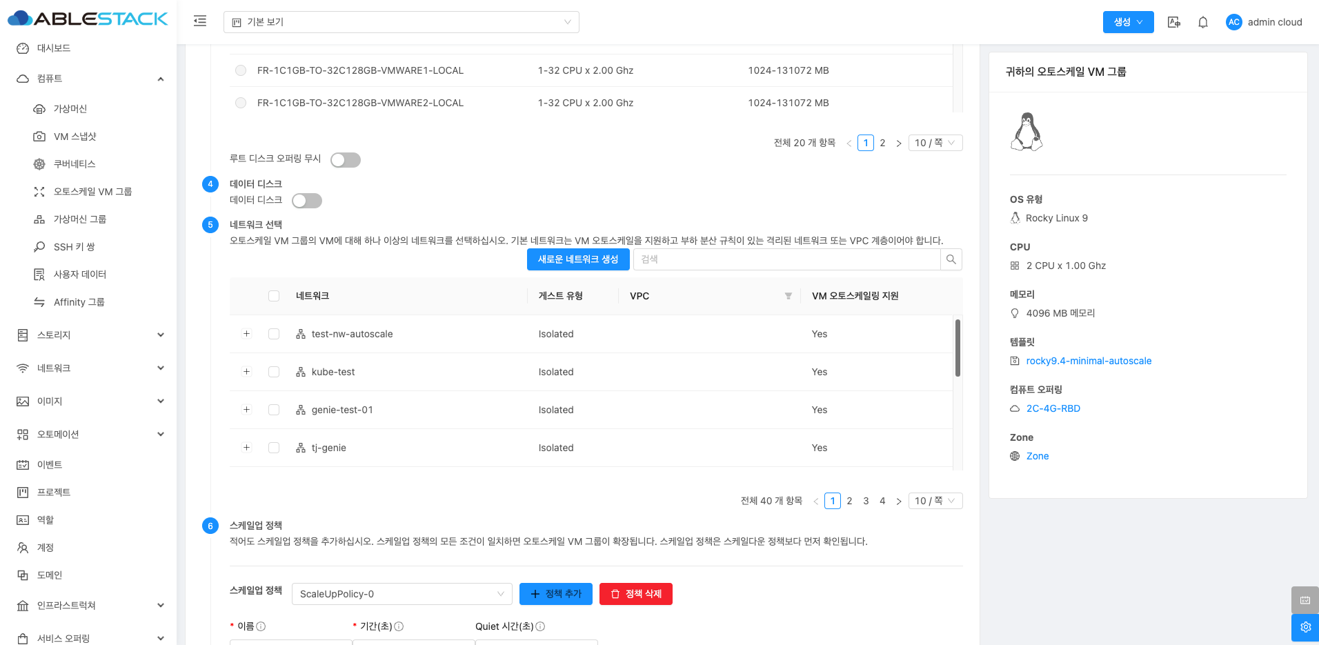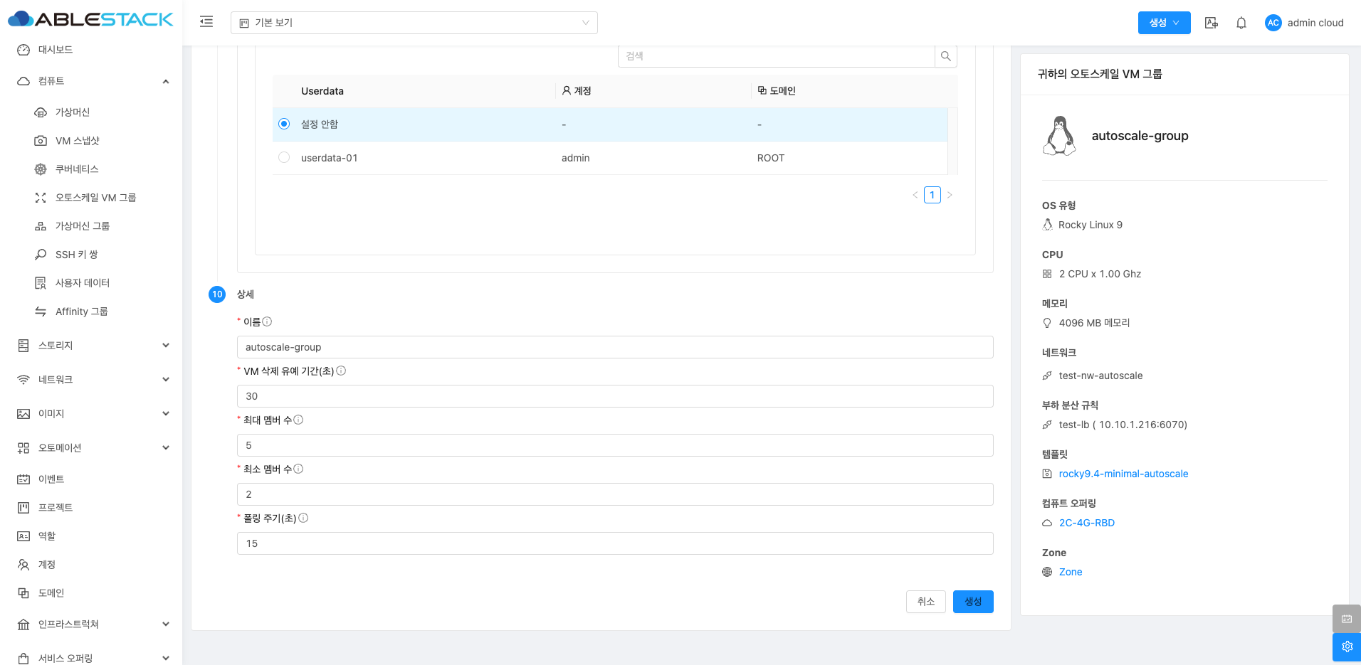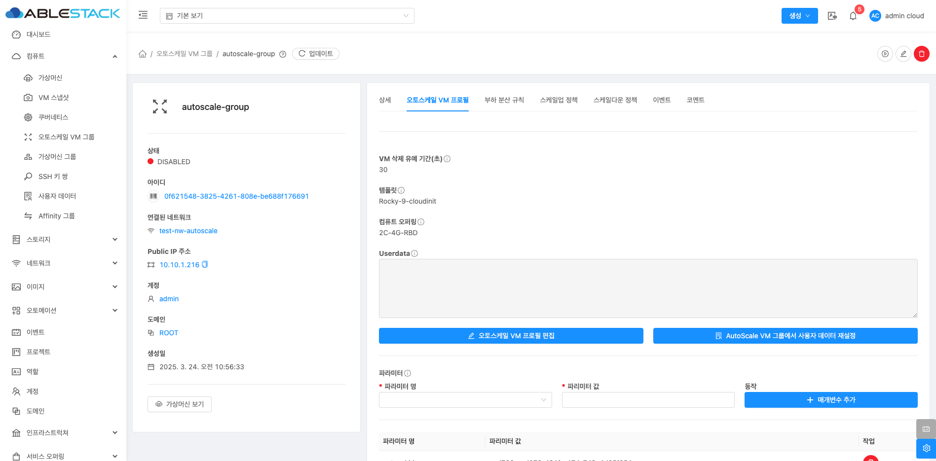 - 이름 :오토스케일 VM 그룹의 이름을 입력합니다.