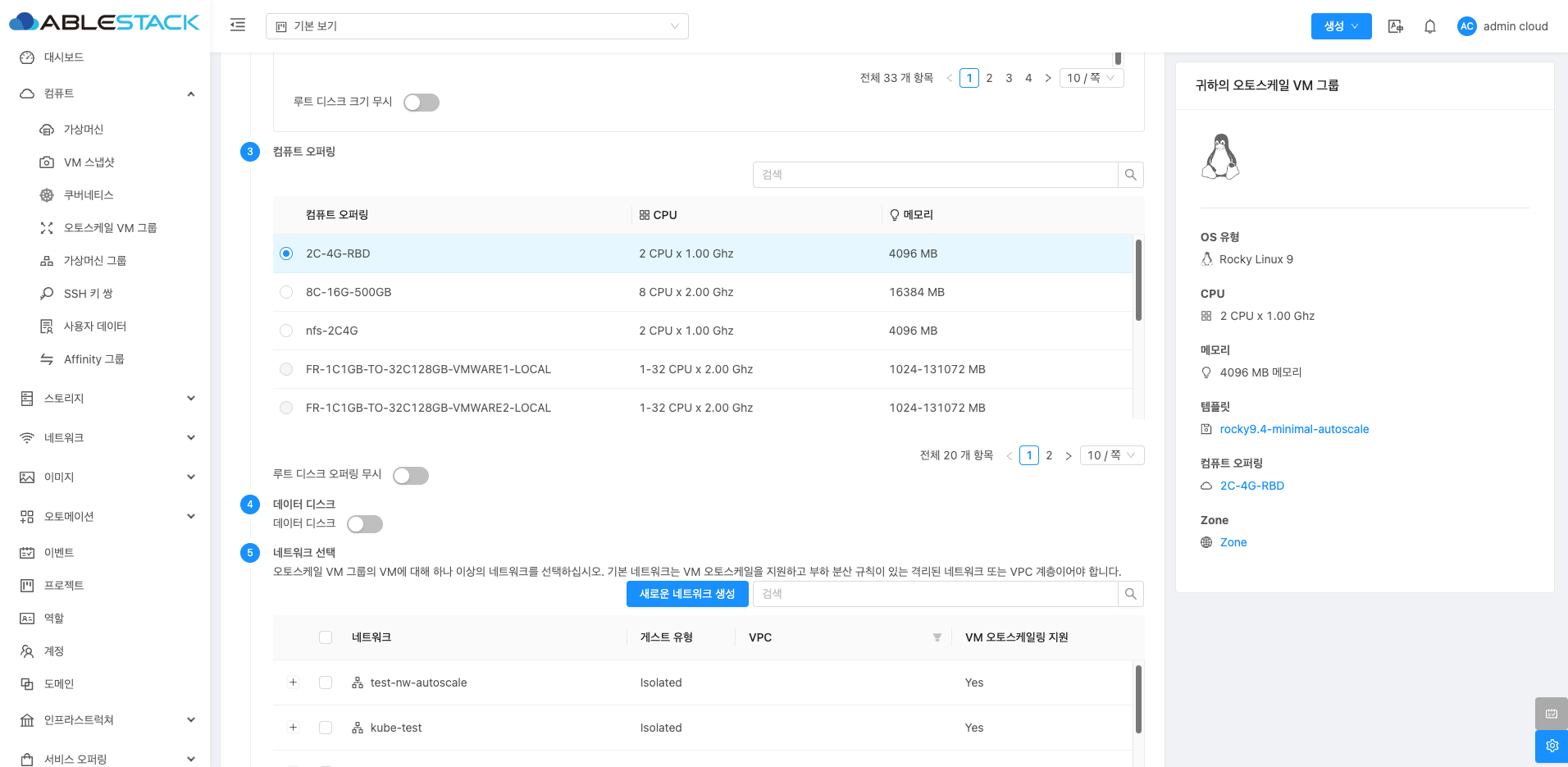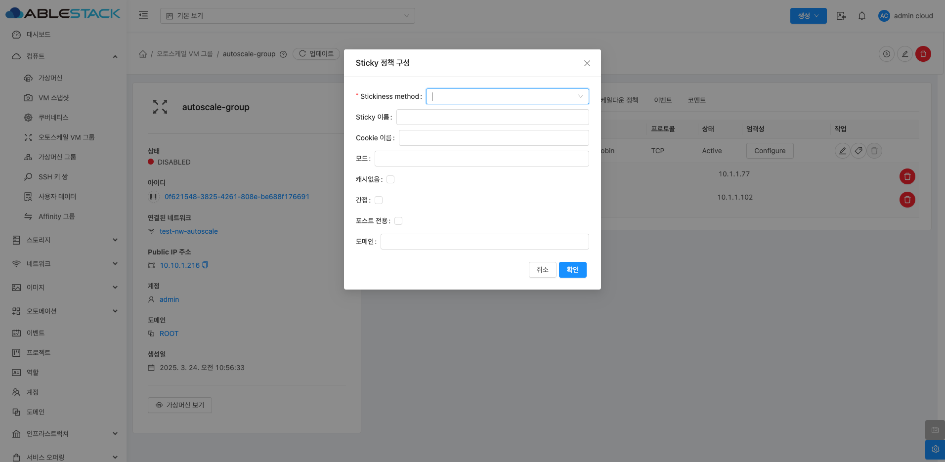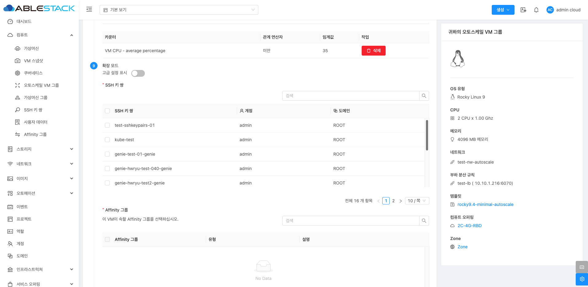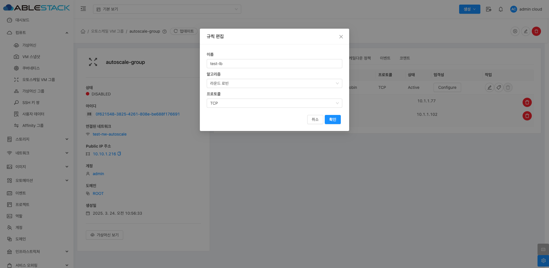- 이름 :오토스케일 VM 그룹의 이름을 입력합니다.