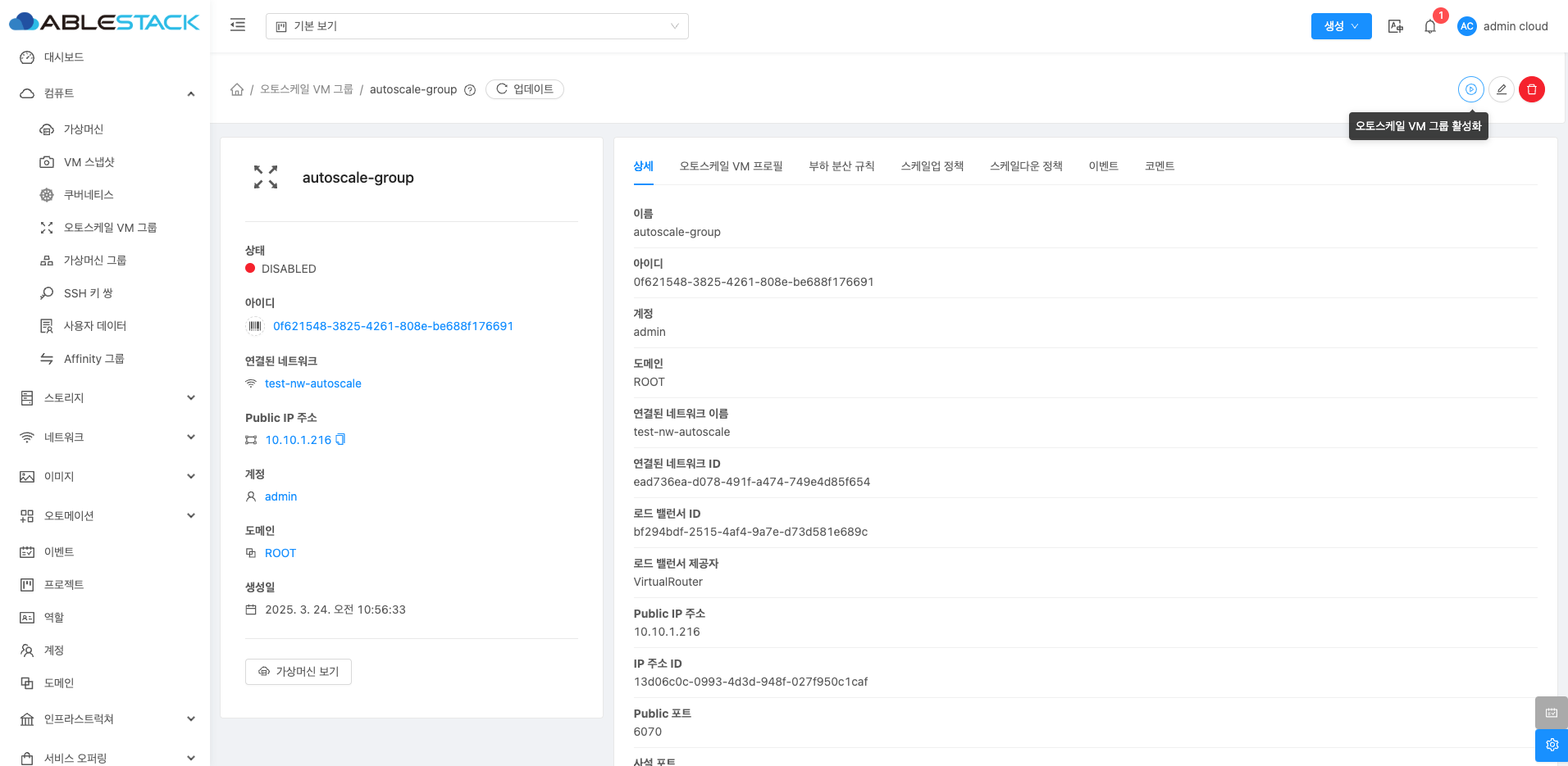 오토스케일 VM 그룹 활성화¶