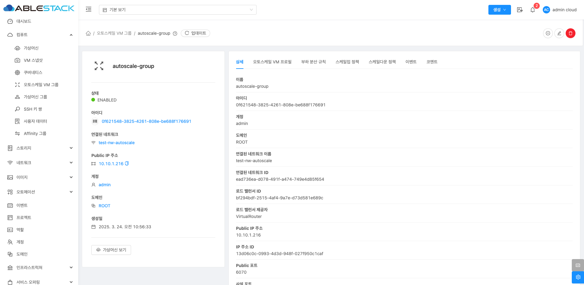 오토스케일 VM 그룹 상세 탭¶