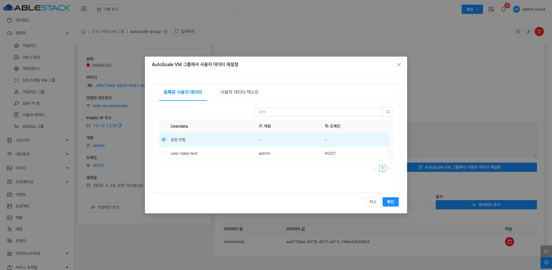 AutoScale VM 그룹에서 사용자 데이터 재설정은 오토스케일 그룹 내에서 생성되는 VM에 대해 초기화 스크립트나 설정 파일을 새로 적용하는 작업입니다. 사용자 데이터(Userdata)는 VM이 부팅될 때 자동으로 실행되어, 예를 들어 소프트웨어 설치나 시스템 설정을 자동화하는 데 사용됩니다. 이를 재설정하면, 이후 생성되는 VM 인스턴스가 새로운 사용자 데이터를 기반으로 초기화되며, 이전에 설정된 사용자 데이터가 무시되고 새로운 데이터가 적용됩니다. 이 기능을 통해 VM이 오토스케일링될 때 일관된 환경을 유지할 수 있습니다.