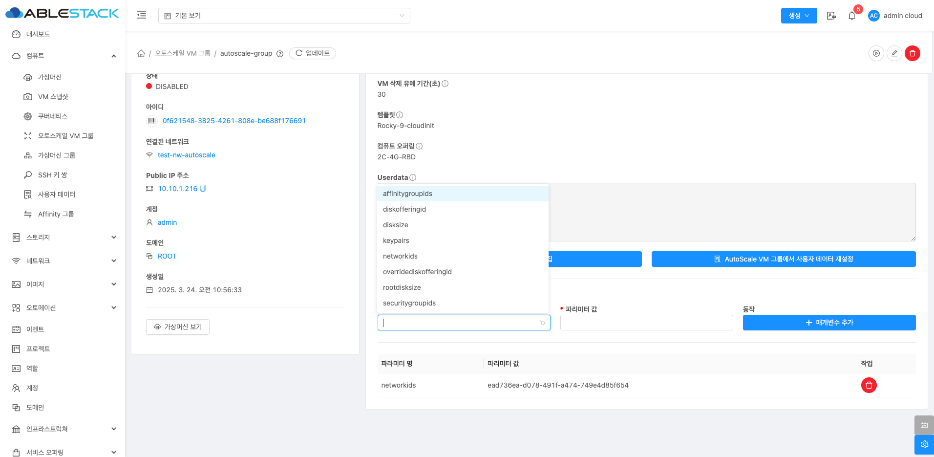 오토스케일 VM 그룹에서 매개변수는 가상 머신의 특정 설정을 추가하는 데 사용됩니다. 다양한 매개변수를 설정하여 VM을 커스터마이징할 수 있습니다. 다음은 변경 가능한 매개변수들입니다: