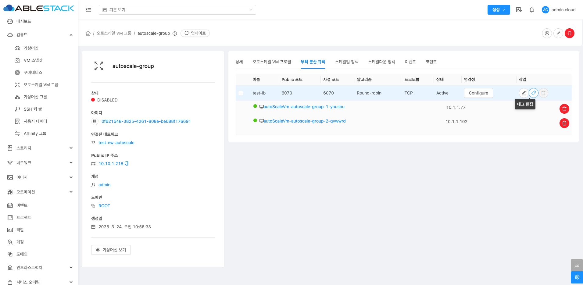 오토스케일 VM 그룹 부하분산 탭¶