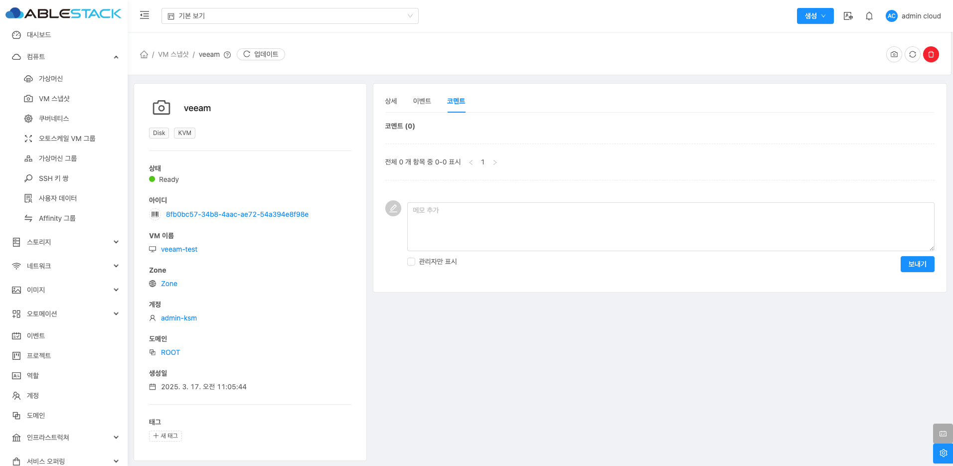 VM 스냅샷 코멘트¶