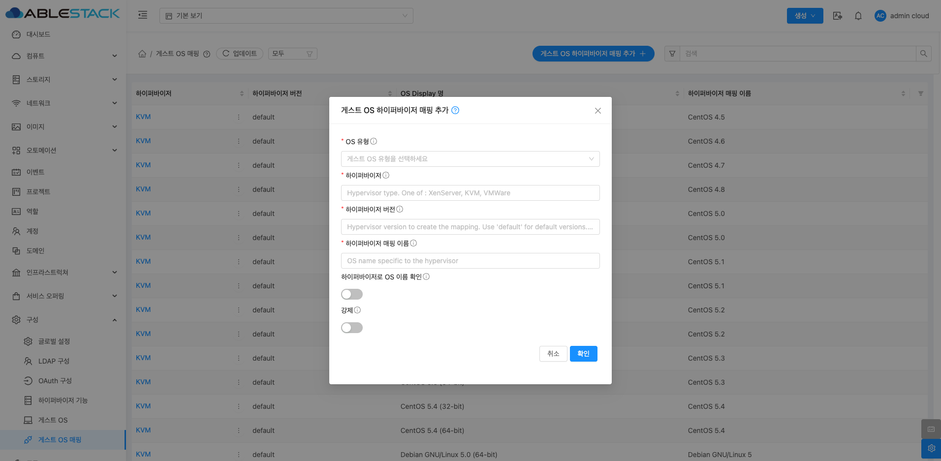 게스트 OS 하이퍼바이저 매핑 추가¶