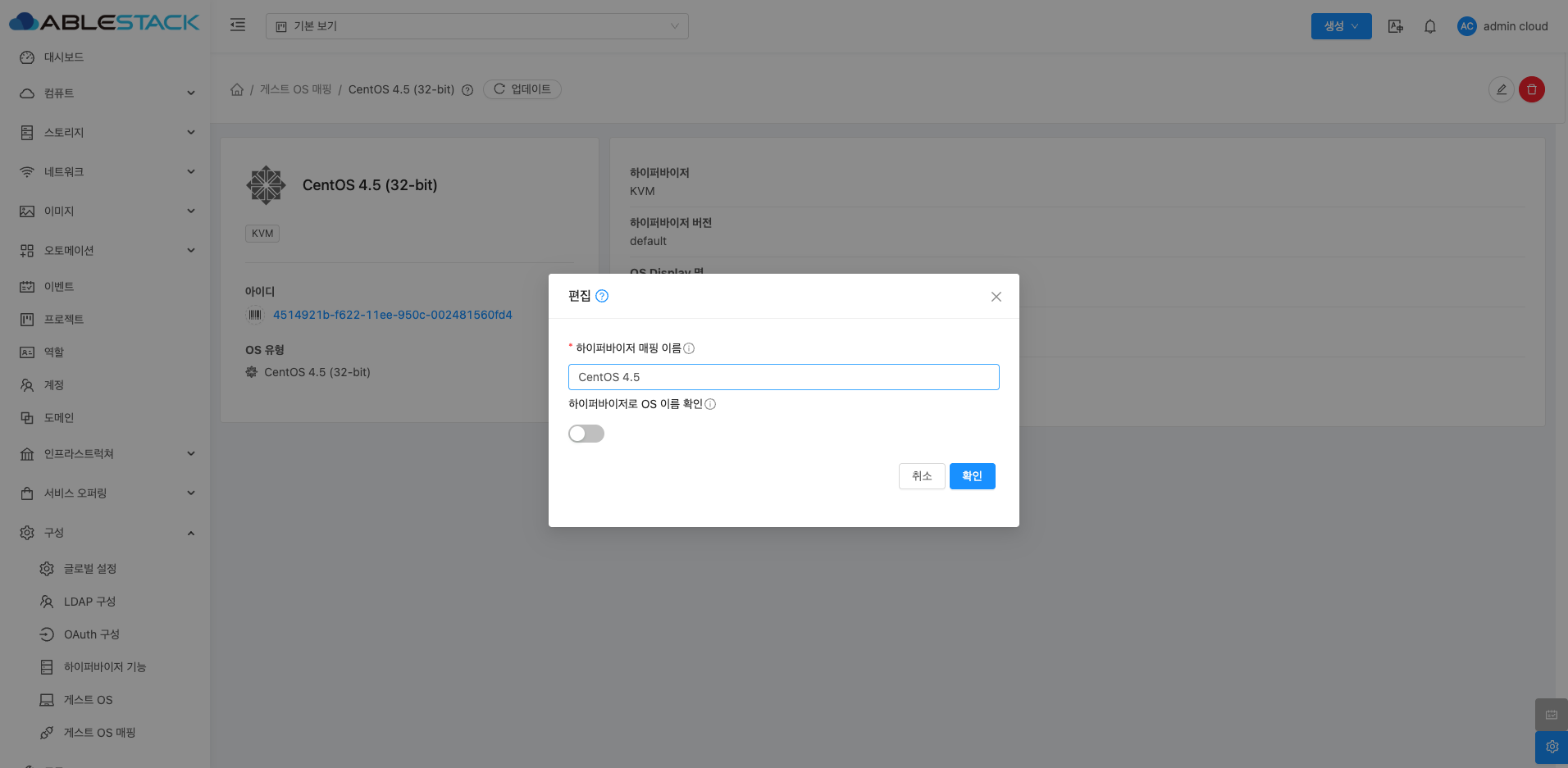 게스트 OS 하이퍼바이저 매핑 편집¶