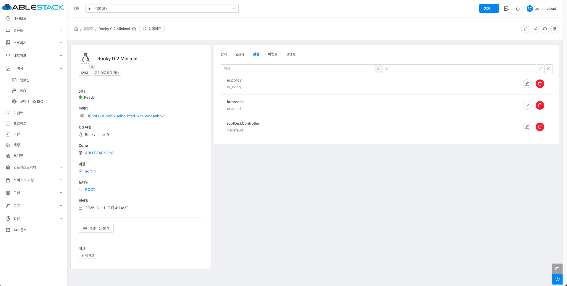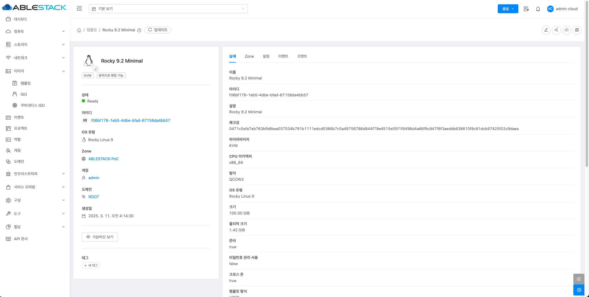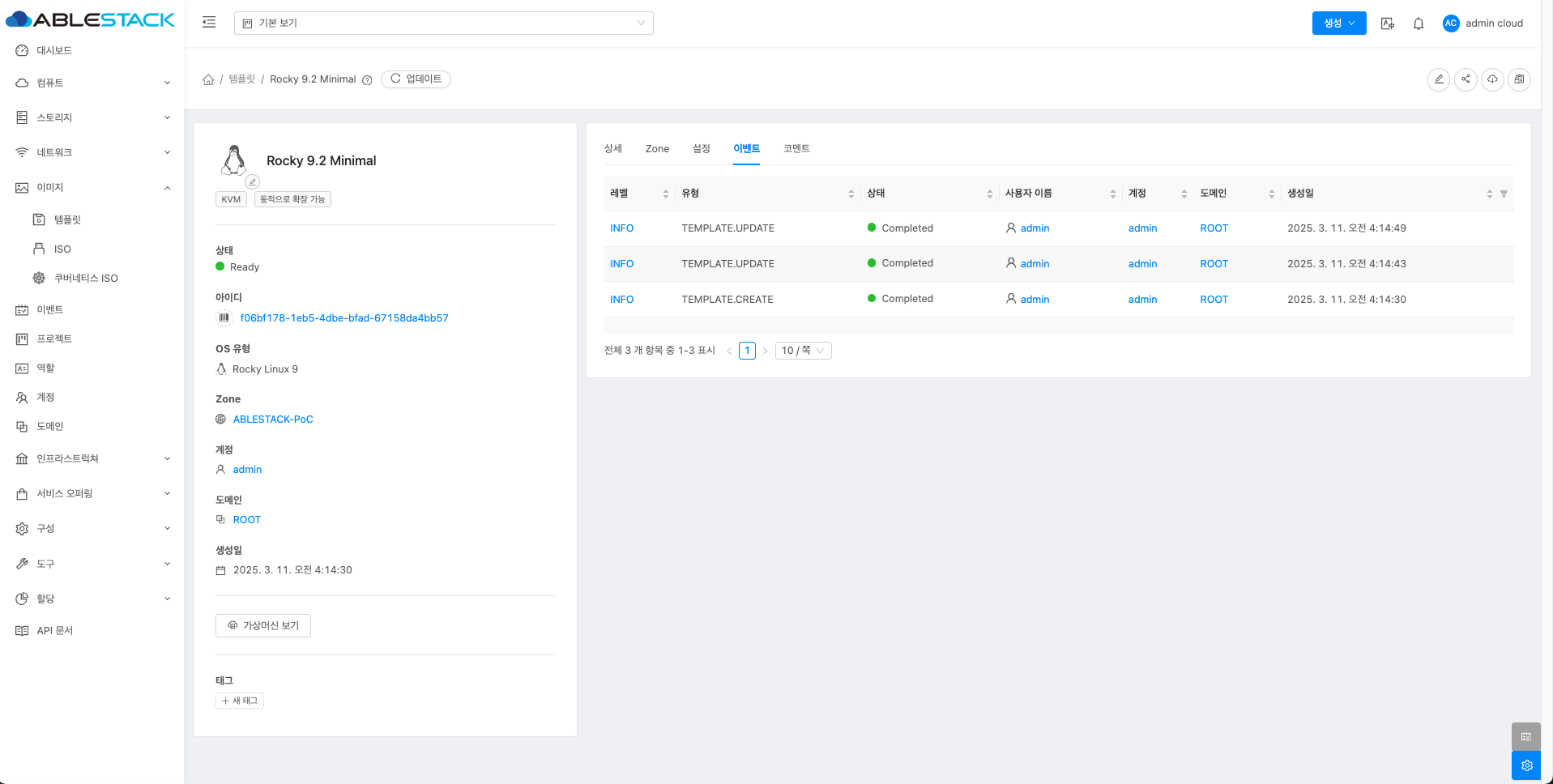 - user : 사용자가 생성하거나 등록한 일반 VM 템플릿