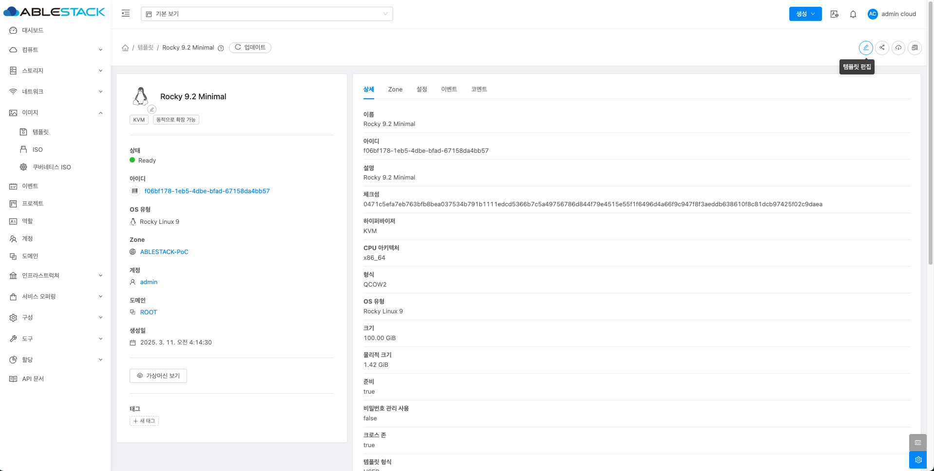 - 템플릿 상세 오른쪽 상단의 템플릿 편집 버튼을 클릭합니다.