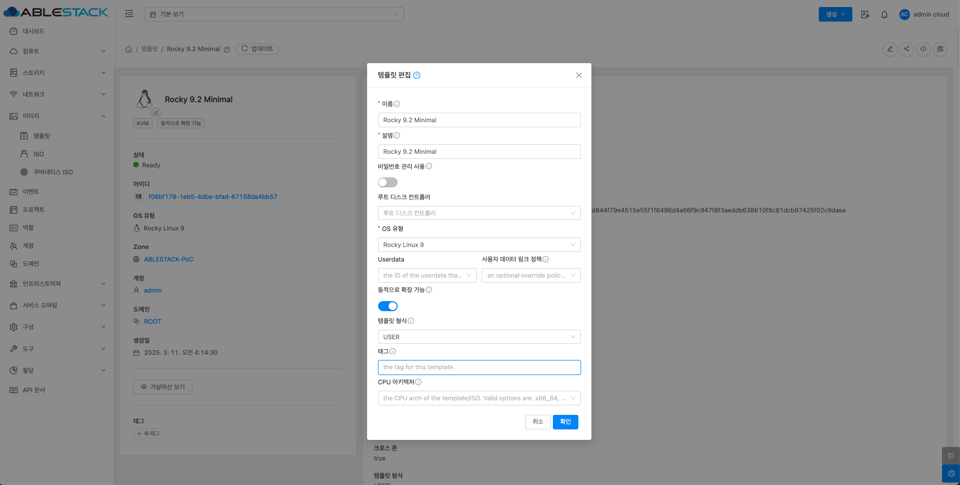 - 템플릿에 의해 생성된 가상머신에 대해 동적 스케일링을 지원할 것인지의 여부