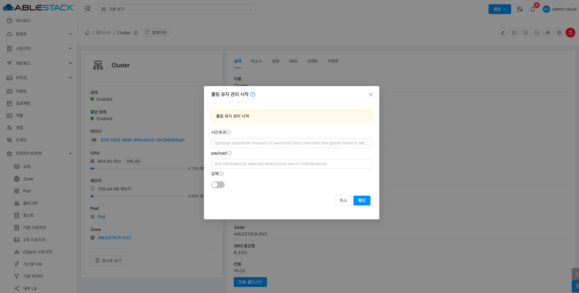 - 확인 버튼을 클릭하여 Cluster를 업데이트합니다.