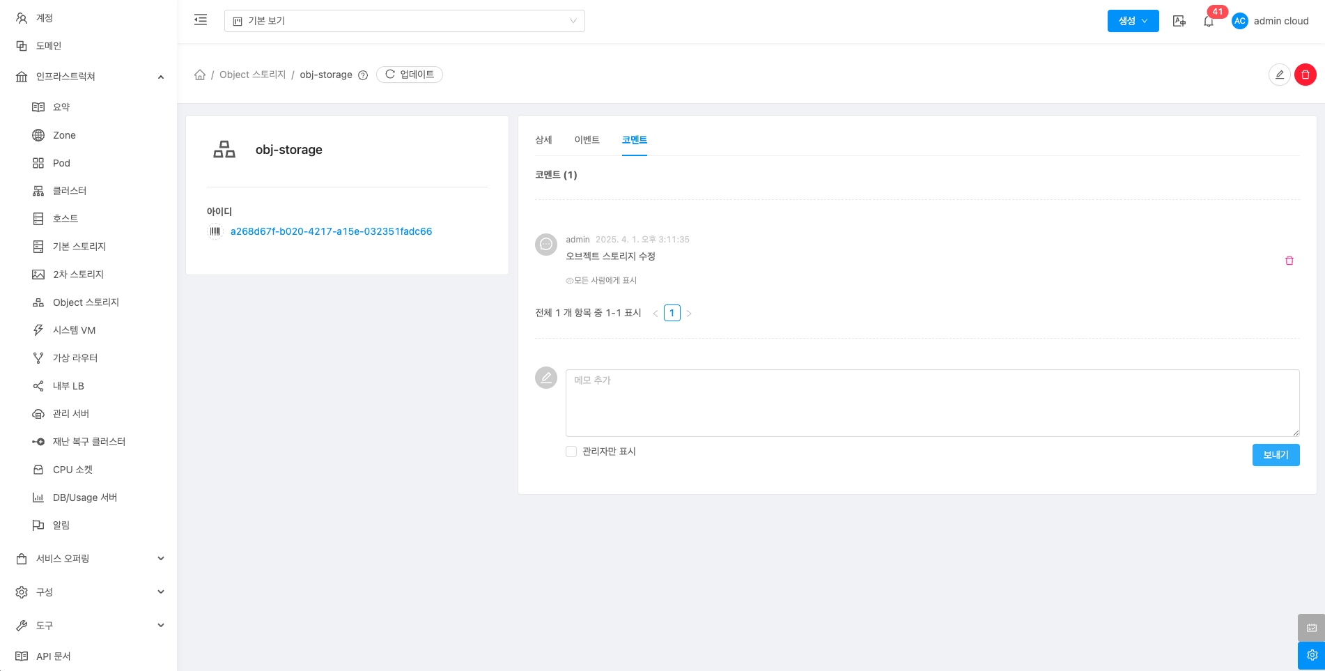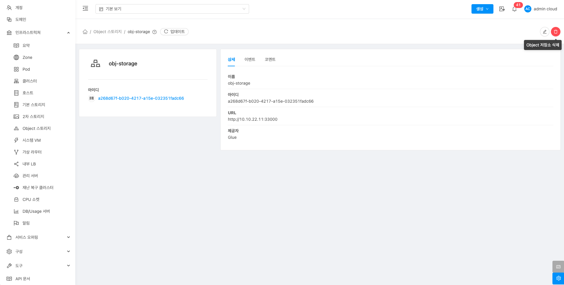 해당 Object 스토리지를 삭제합니다.
