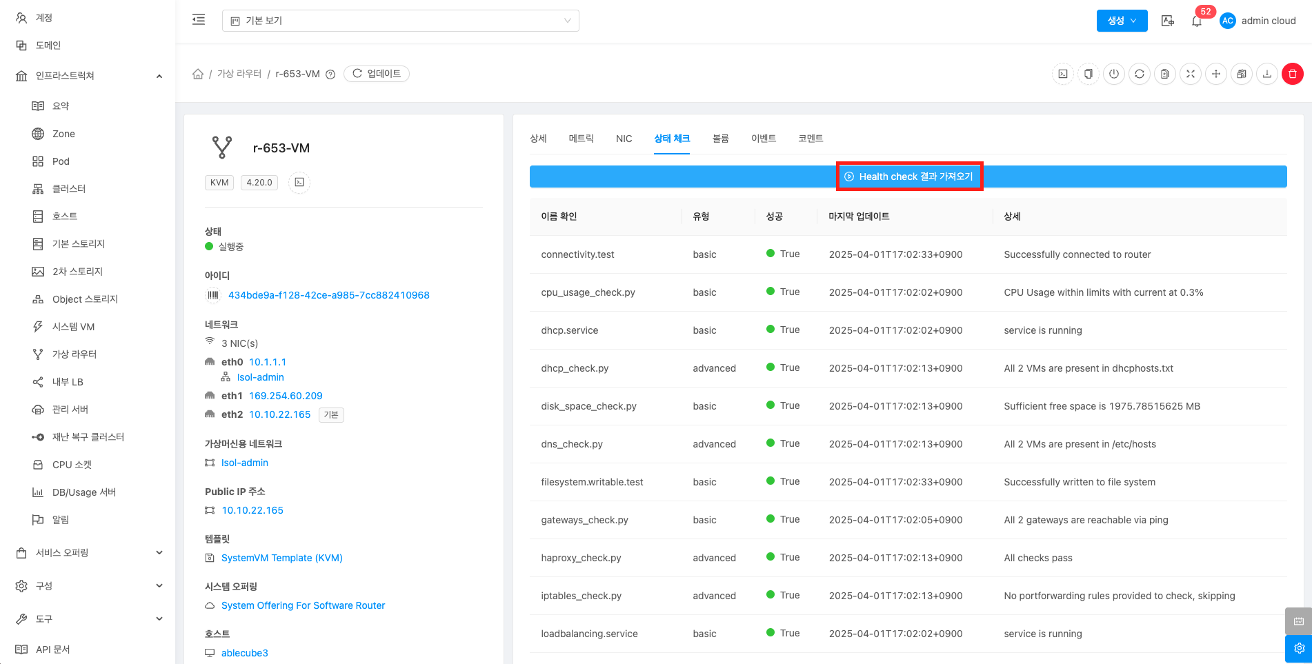 Health check 결과 가져오기를 수행할 수 있는 기능입니다.