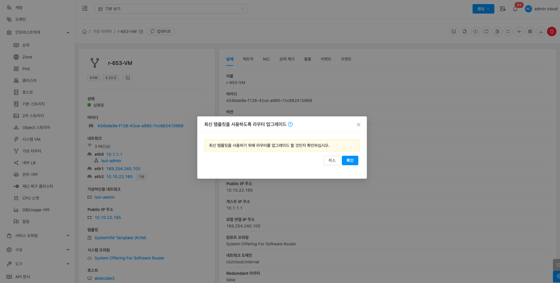 가상 라우터를 최신 템플릿으로 업그레이드할 수 있습니다.