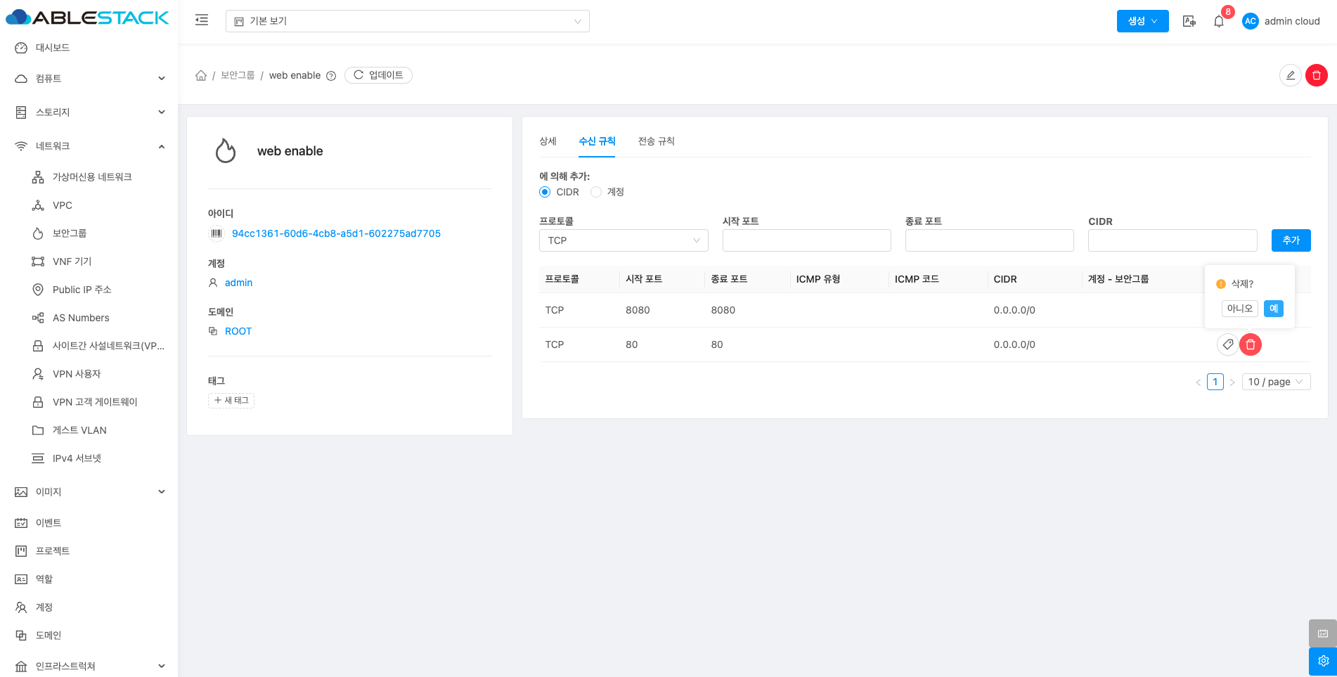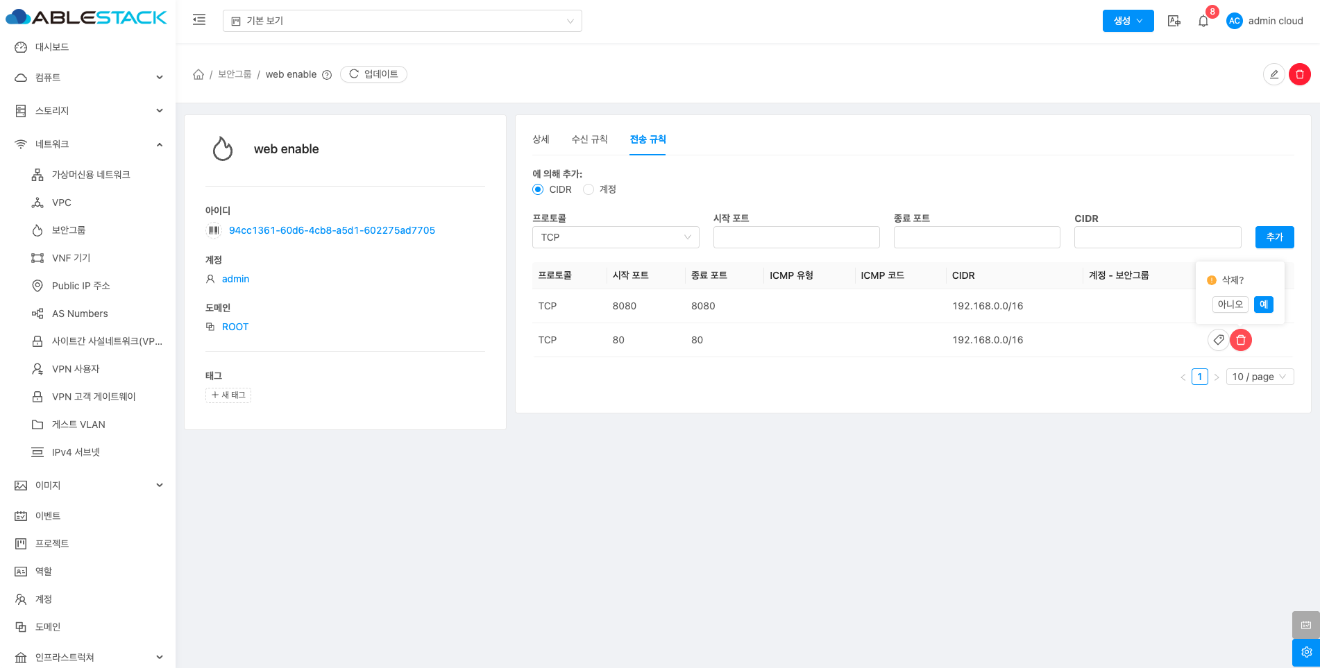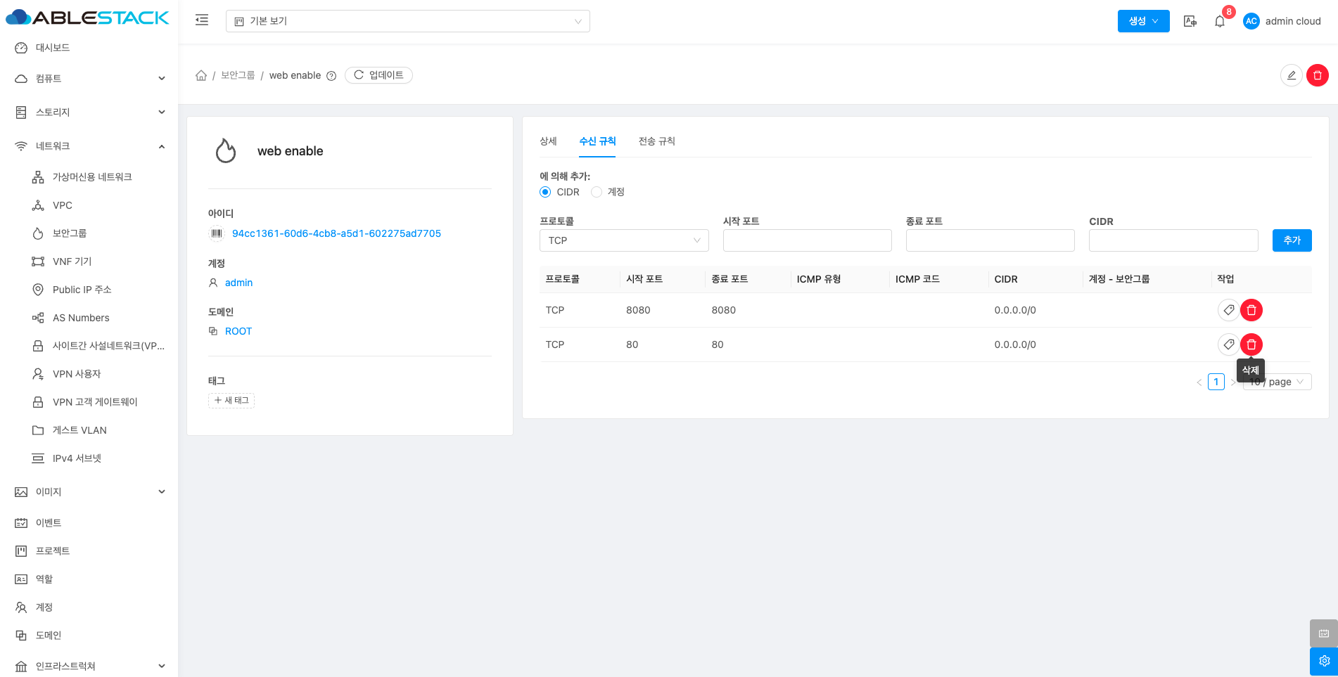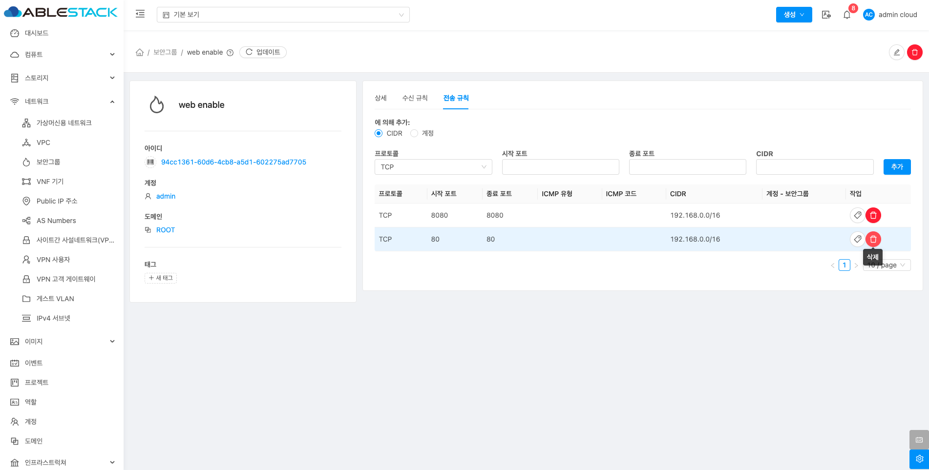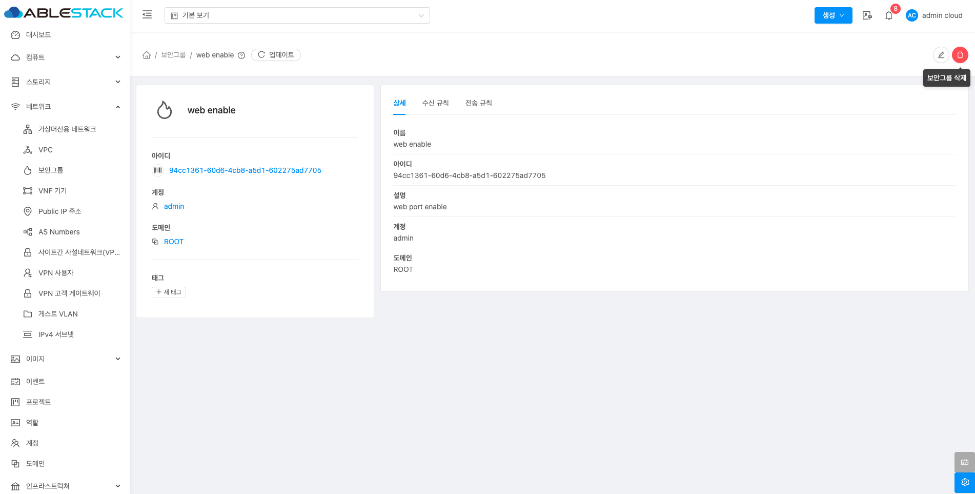 보안그룹 삭제¶