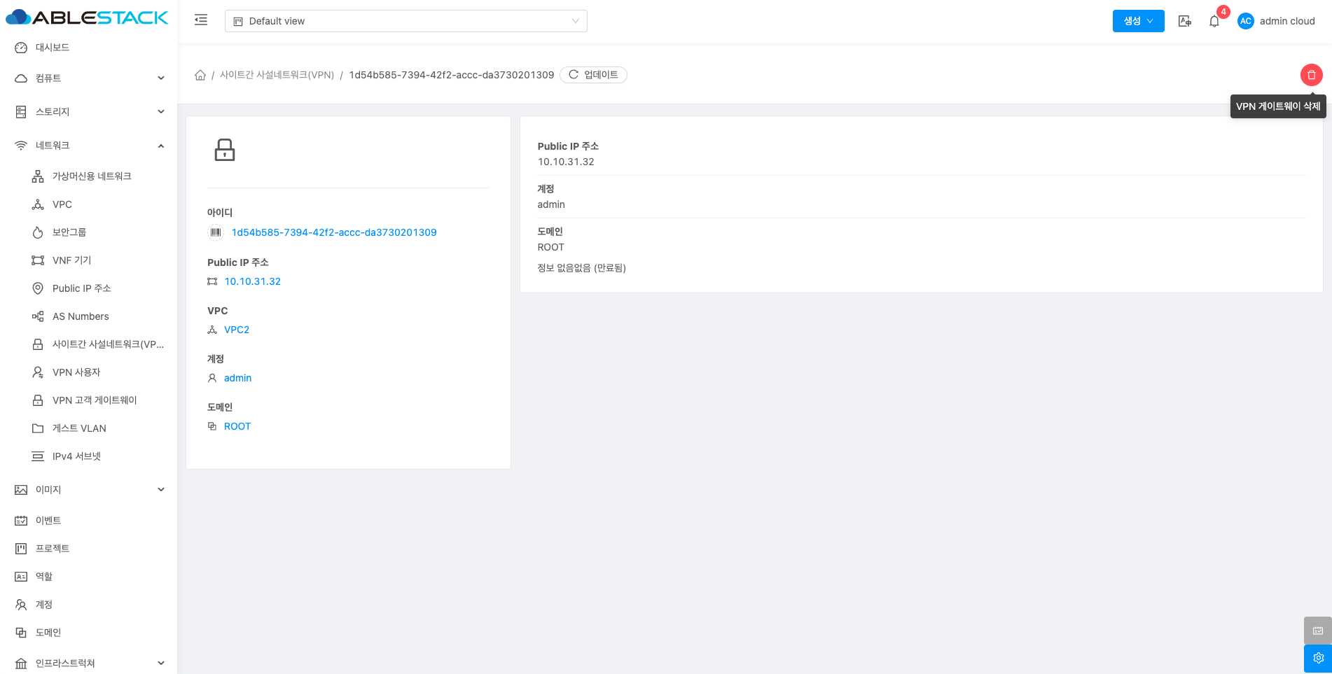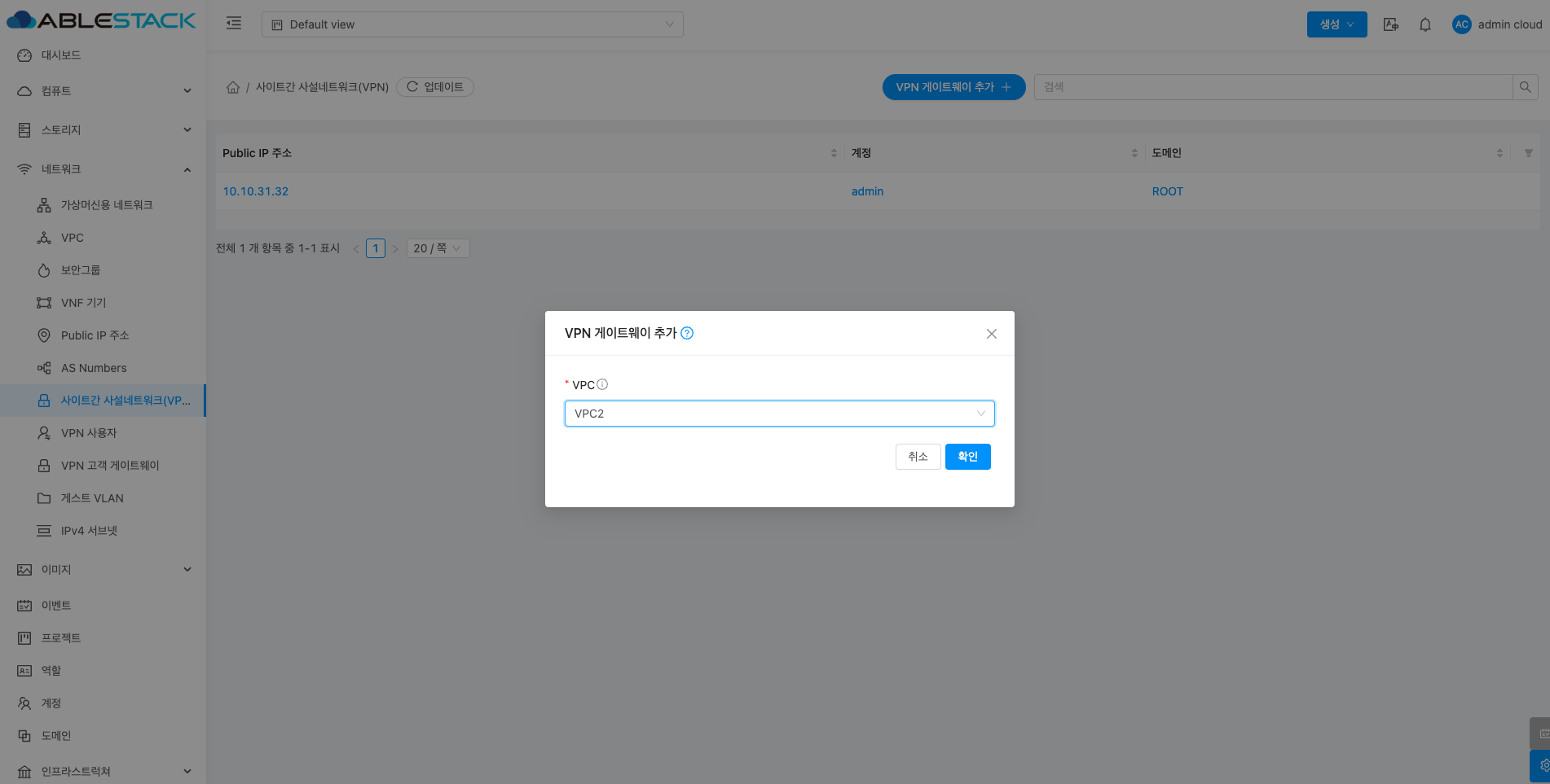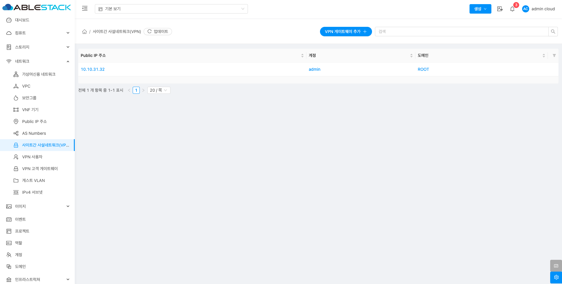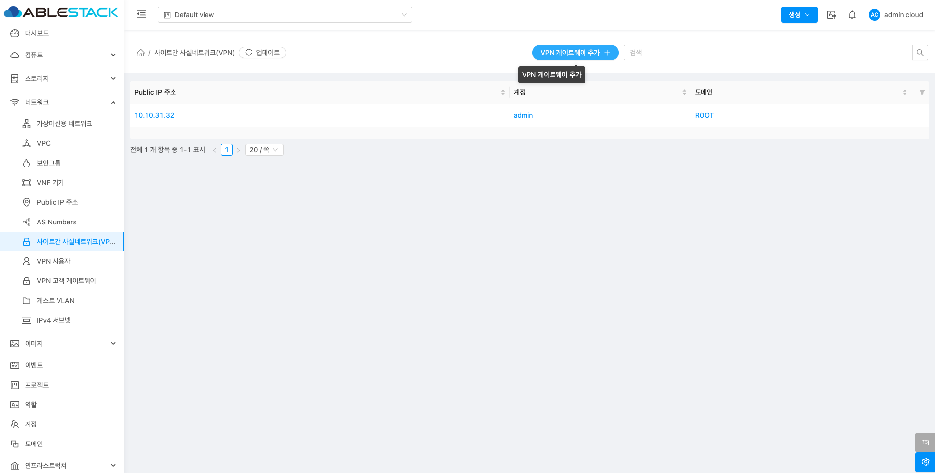 생성된 Site-to-site VPN 목록을 확인하거나 VPN 게이트웨이 추가 버튼을 클릭하여 Site-to-site VPN을 생성할 수 있습니다.